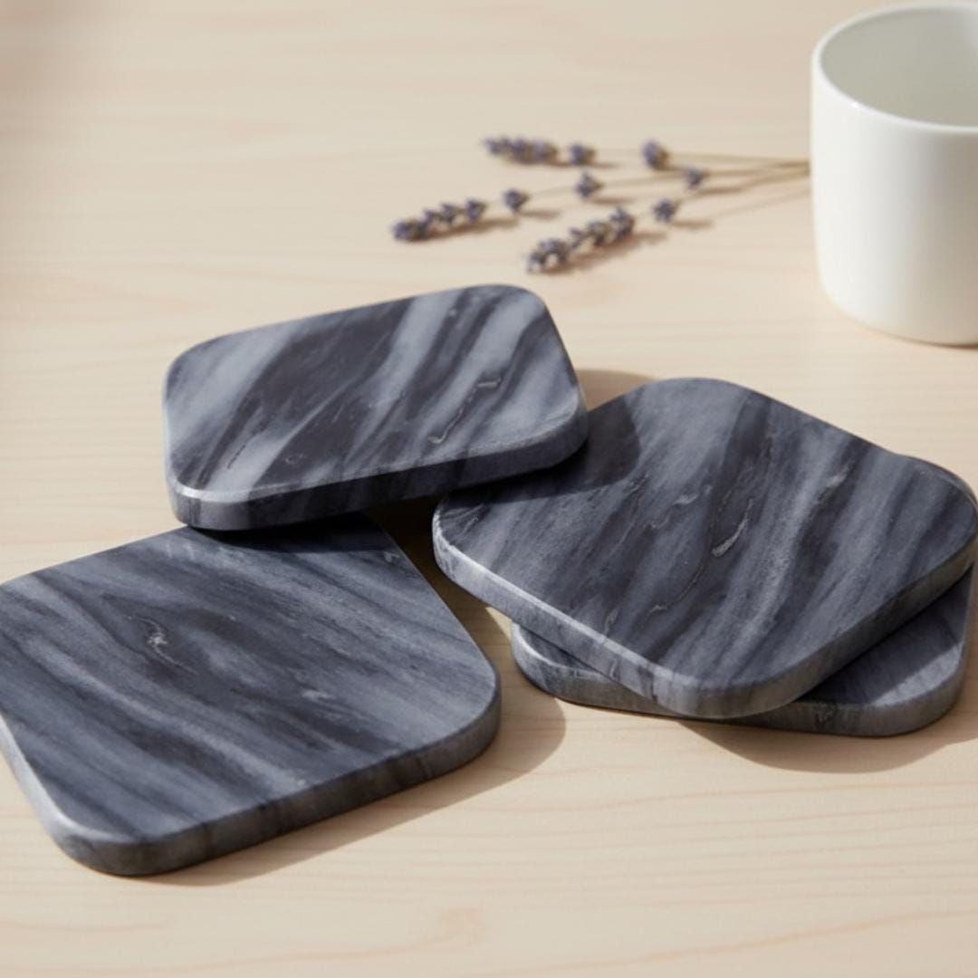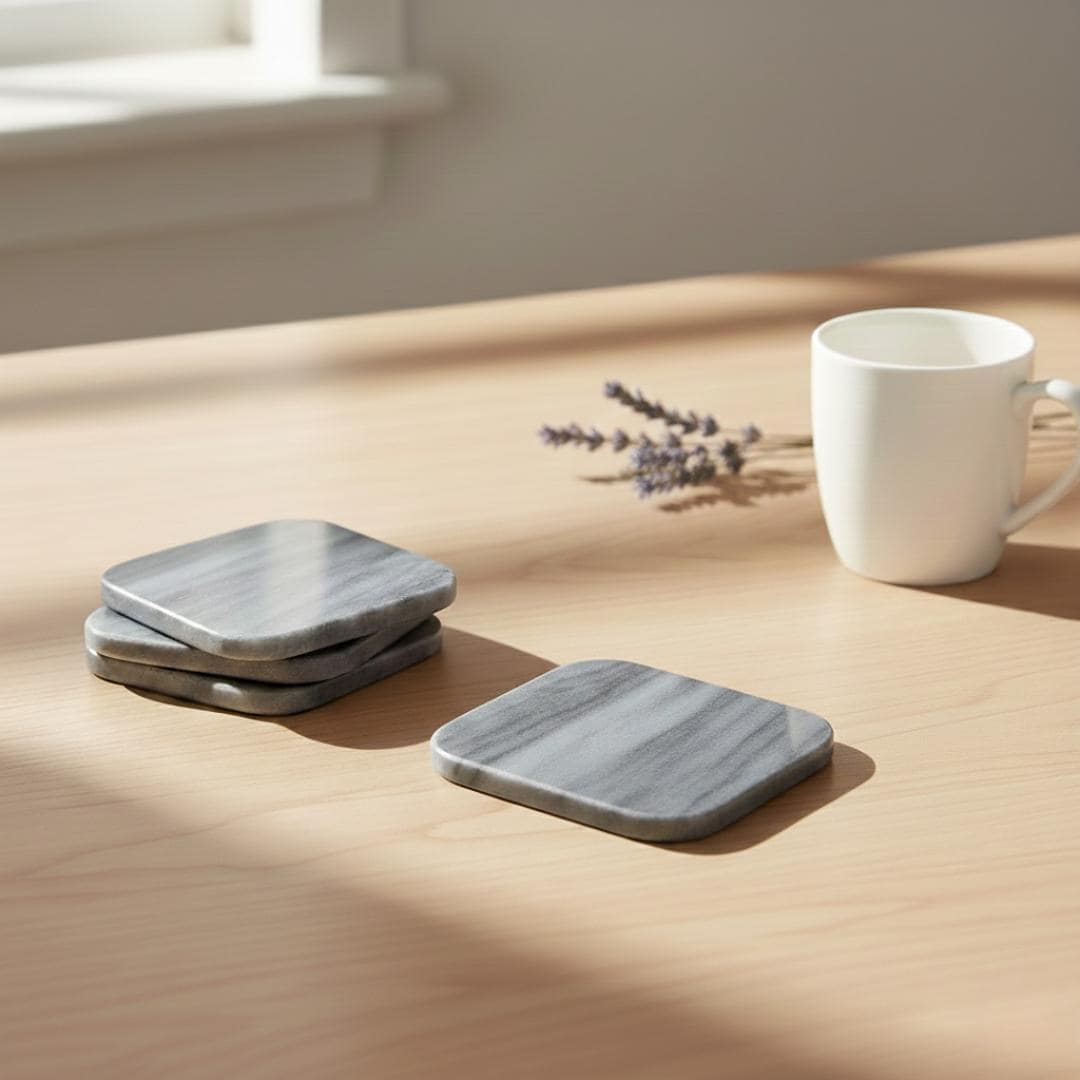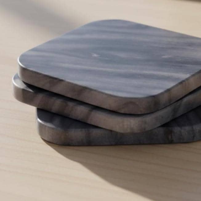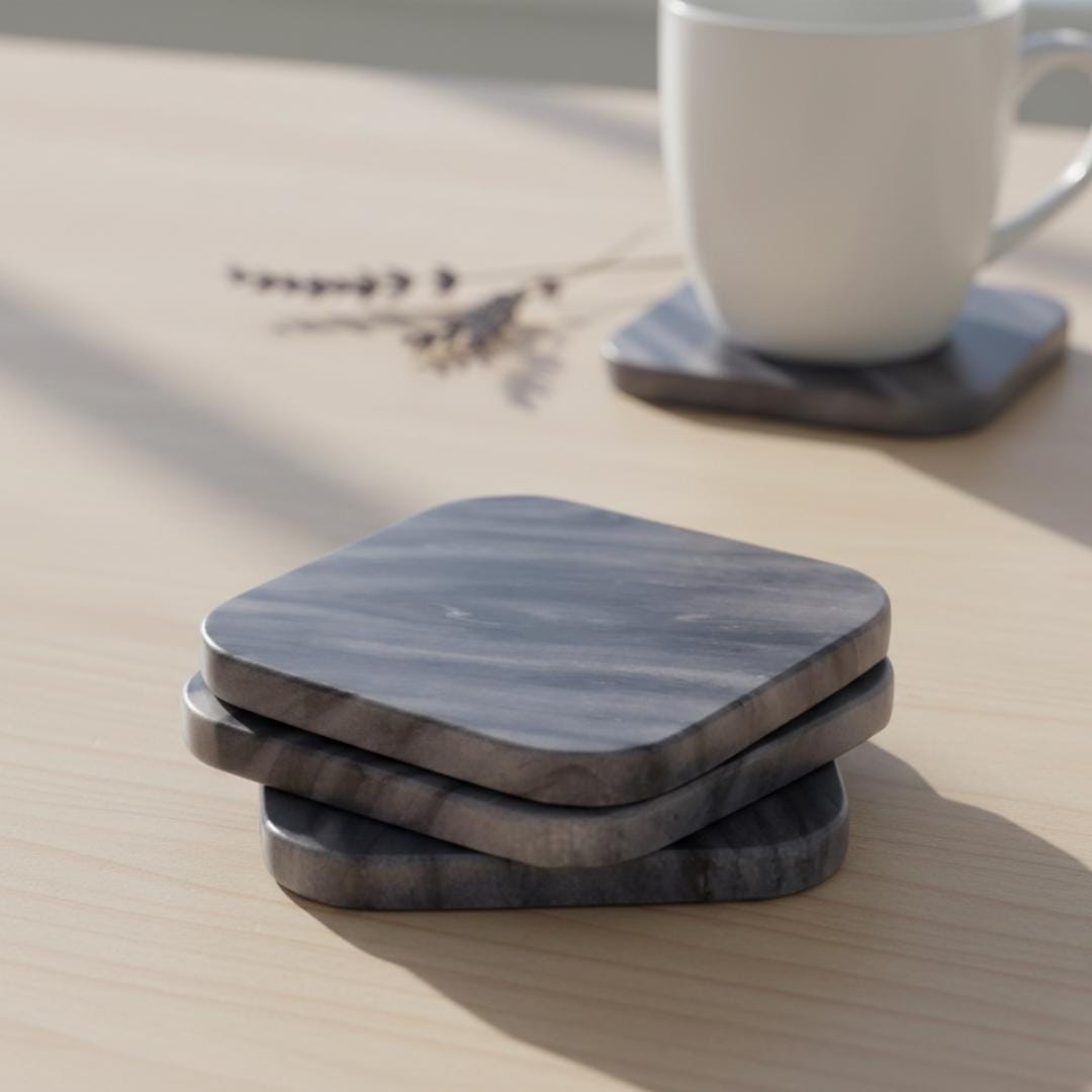 Add a refined natural accent to your home while protecting your furniture — this handcrafted charcoal marble coaster set is the perfect blend of elegance and everyday practicality.