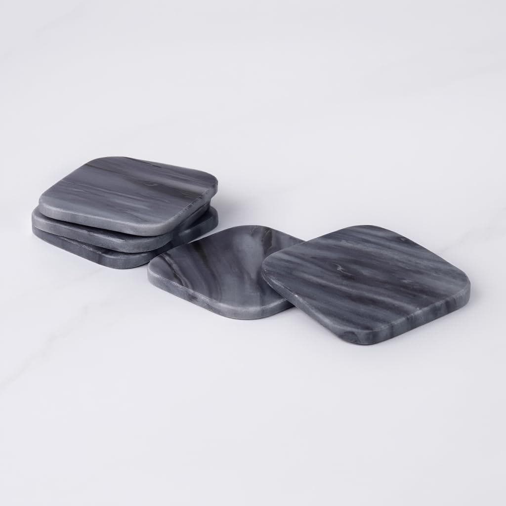 Premium Charcoal Marble Coasters Set of 4 – Handcrafted Natural Stone Drink Coasters with Anti-Slip Protection for Table Surfaces