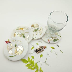 • Material: Natural charcoal marble stone • Shape: Round / square (depending on design) • Quantity: Set of 4 coasters • Finish: Polished top with anti-slip base • Use: For coffee, tea, wine glasses, cups & more
