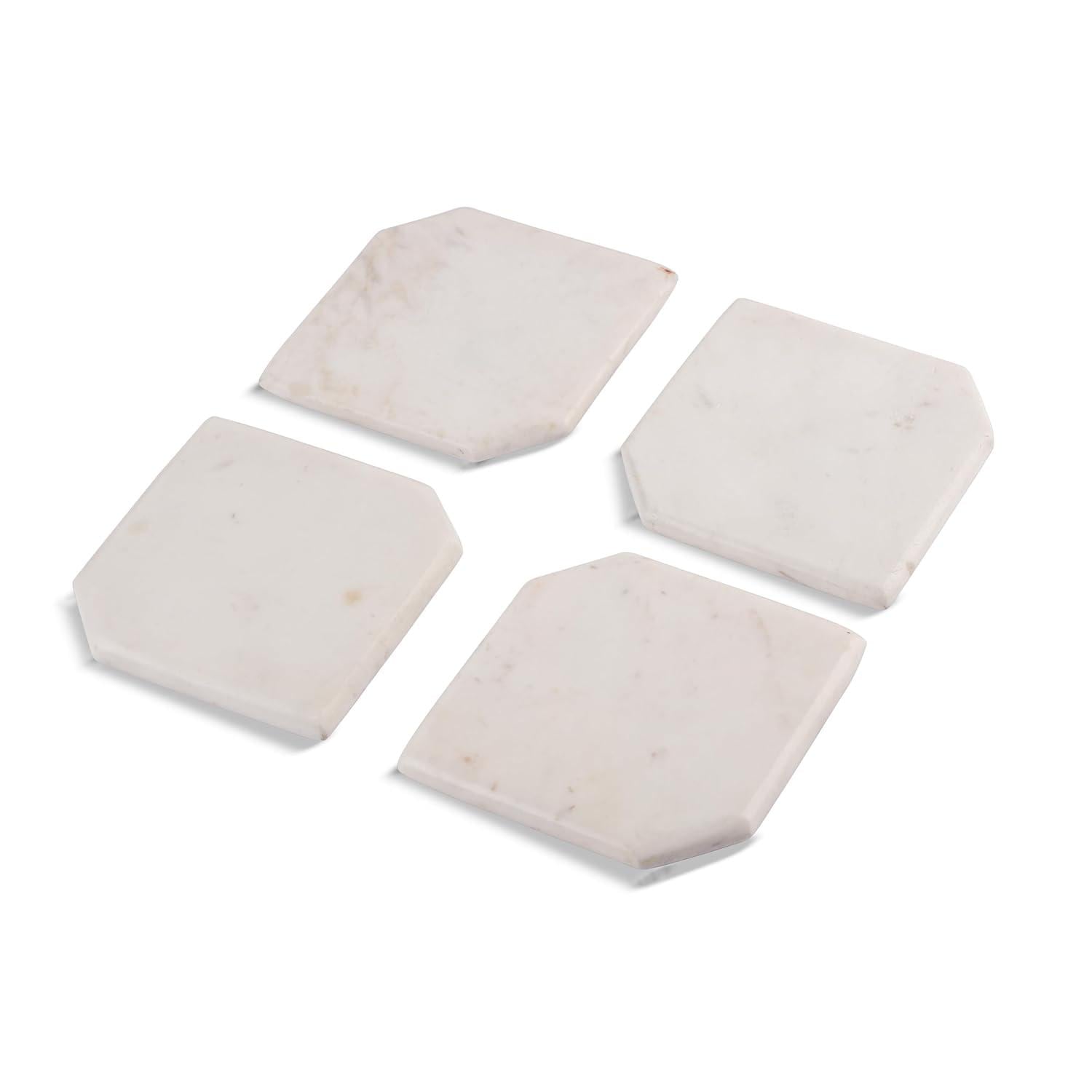 • Material: Authentic natural marble stone • Finish: Smooth polished with stripe pattern • Quantity: Set of 4 coasters • Shape: Square or round based on design • Use: Coffee, tea, wine, cocktails, cold drinks