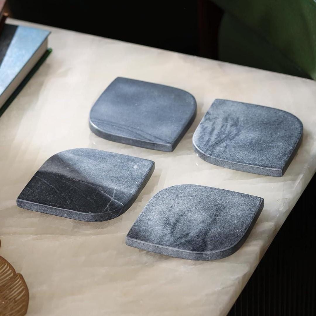 Premium Grey Leaf Marble Coaster Set – Natural Stone Coasters for Cups & Glasses, Table Protection, Home Decor, Housewarming Gift