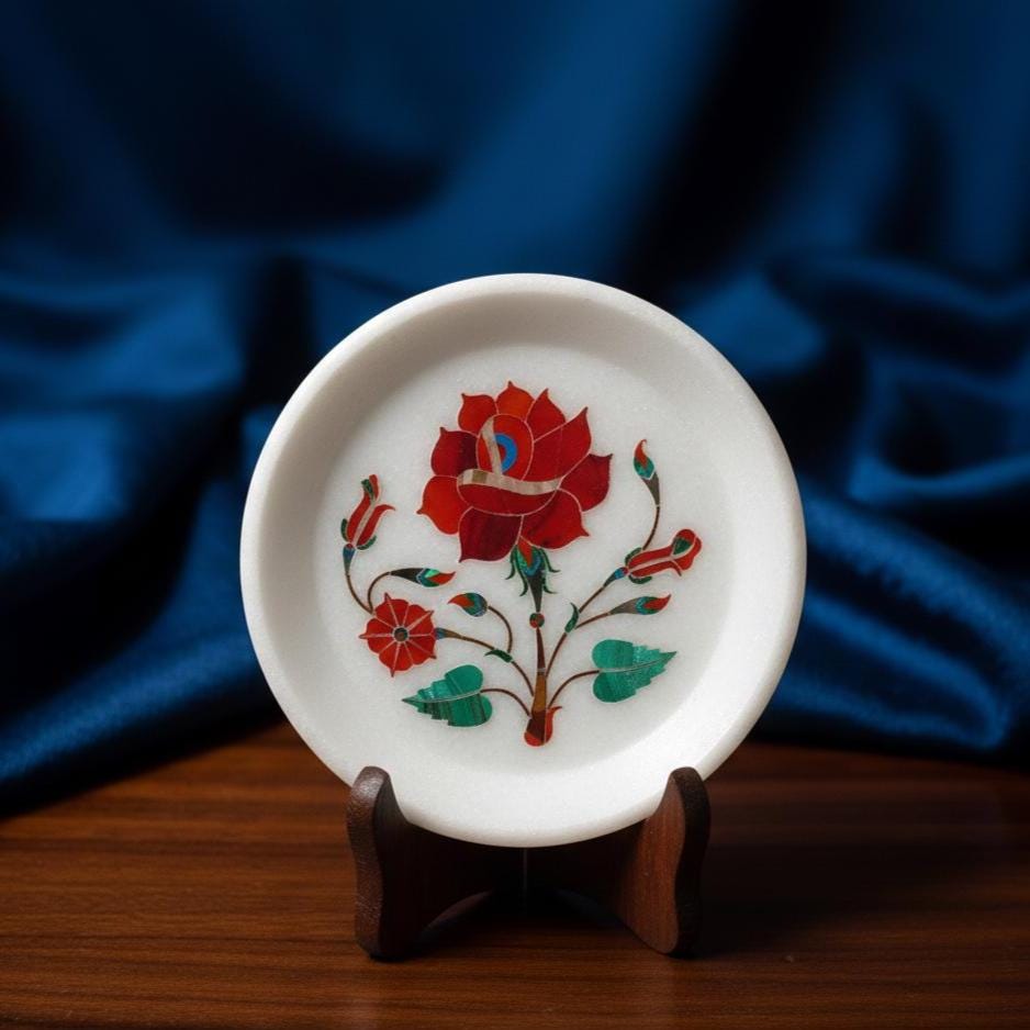 Bring timeless beauty and handcrafted artistry into your home with this Handmade Indian Marble Inlaid Decorative Plate. This exquisite piece is meticulously crafted from premium white marble with intricate floral inlay work, making it a standout decorative accent and a thoughtful gift for any occasion.