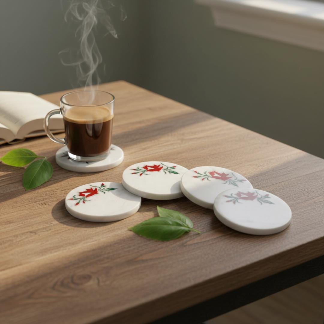 Handcrafted Marble Drink Coasters for Table, Home & Office Decor, Natural Stone Coaster Set