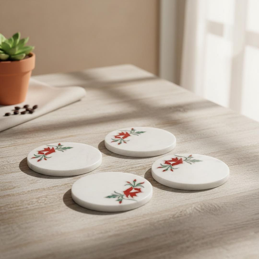 Each coaster is carefully crafted by skilled artisans, showcasing the unique beauty of marble with subtle veining and smooth finished edges. These coasters are designed to protect your furniture from water rings, heat marks, and condensation caused by cups, mugs, glasses and tumblers — all while adding a refined, minimalist aesthetic to your living space.