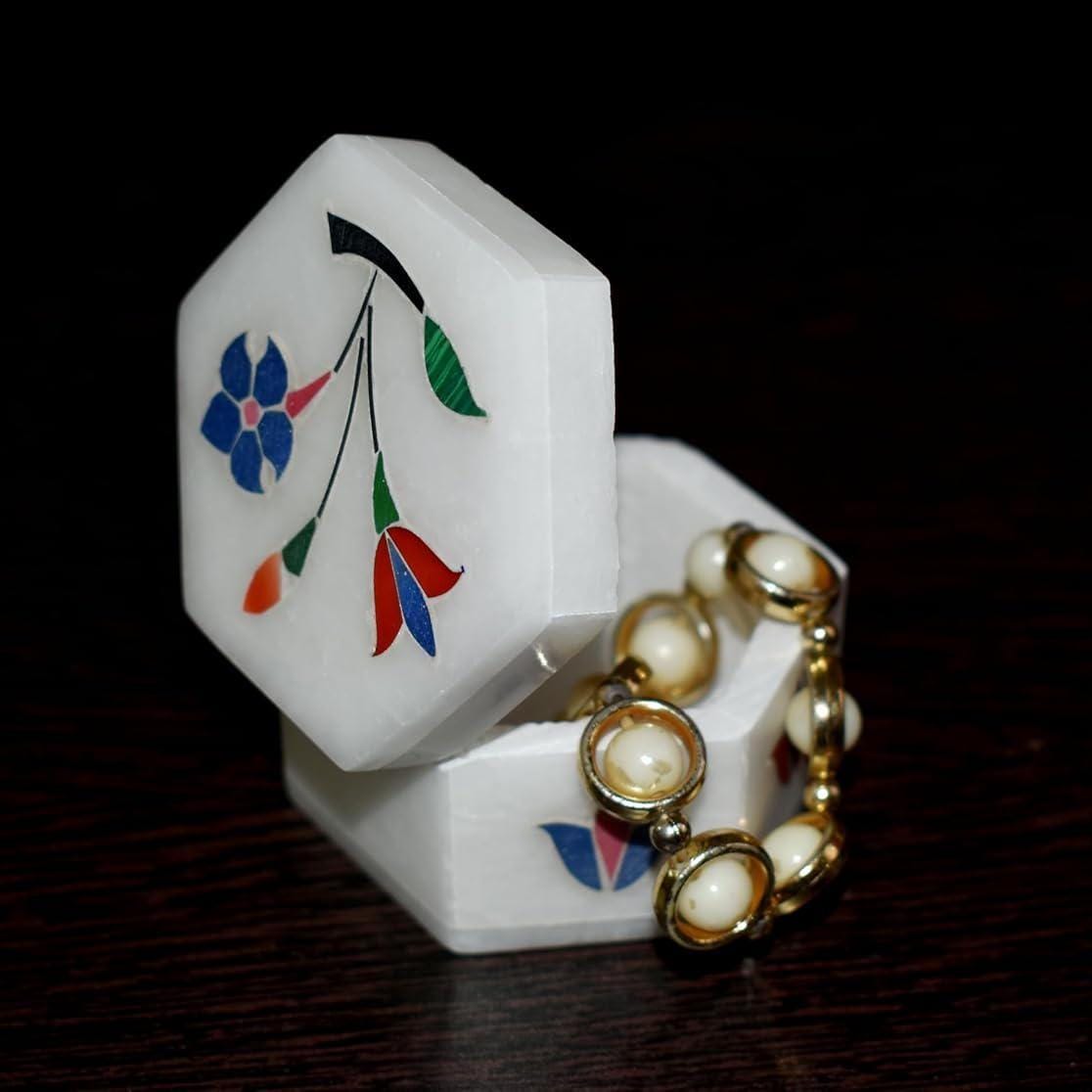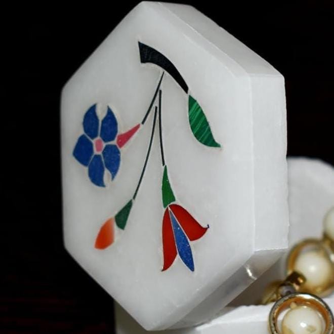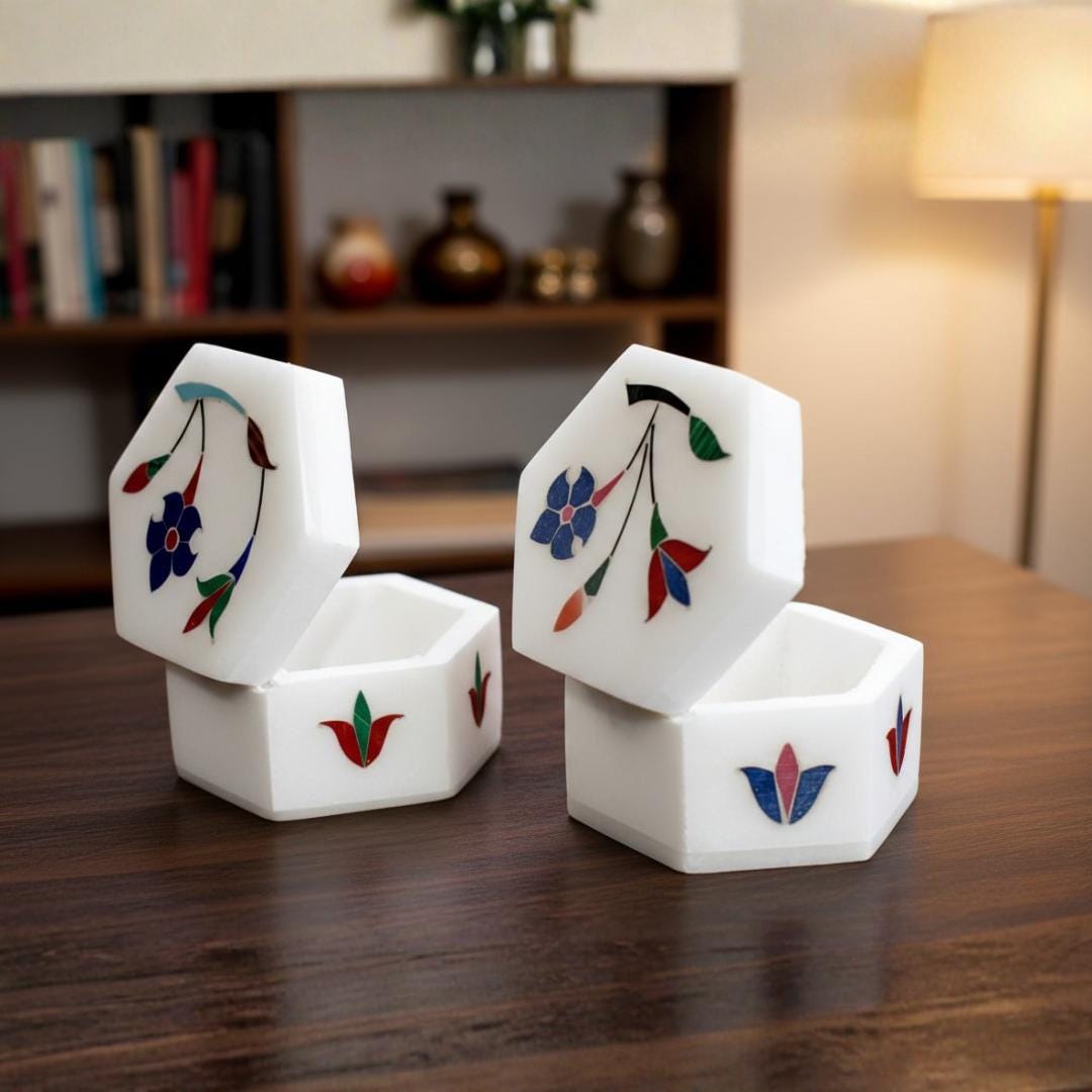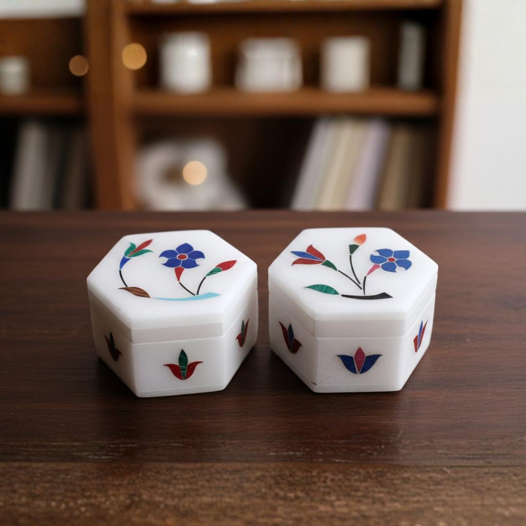 Handcrafted Hexagonal Marble Storage Box with Floral Inlay | Elegant Trinket & Jewelry Organizer for Home Decor and Gift