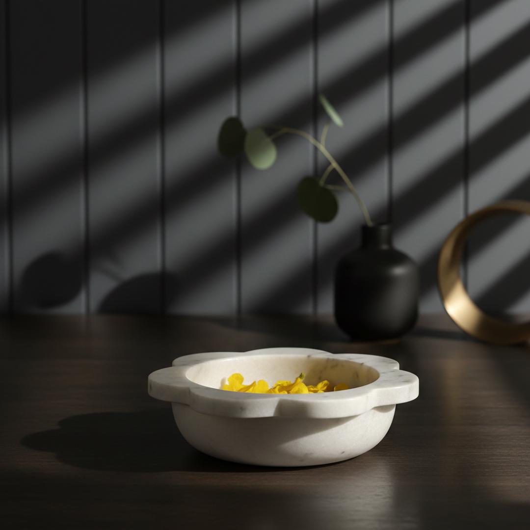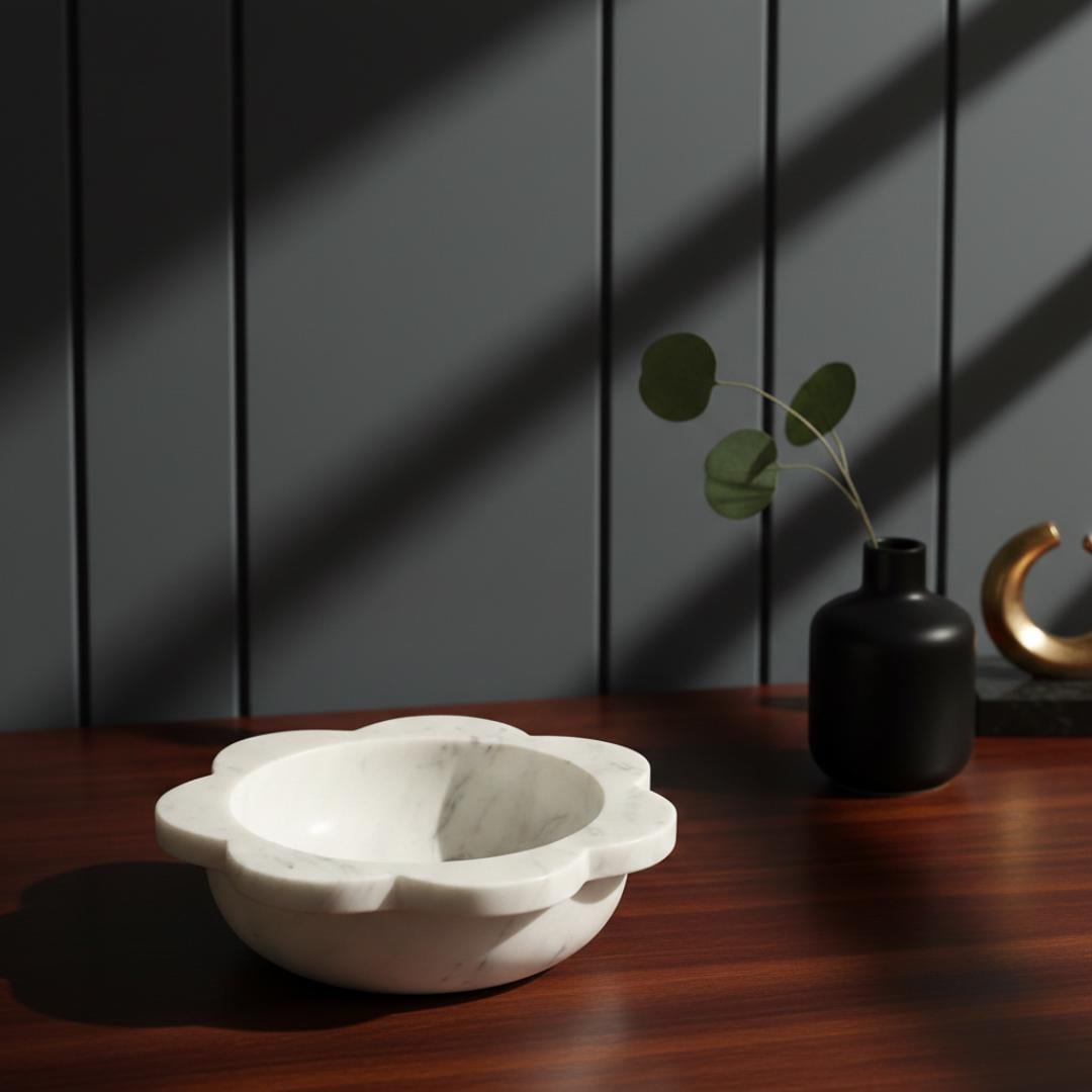 Elevate your home decor with this handmade White Marble Crescent Urli Shallow – Small, a timeless artisanal piece that brings elegance and serenity to any space. Crafted from premium marble, this shallow urli features graceful scalloped edges and a pristine finish, perfect for creating stunning decorative arrangements with floating flowers, candles, or potpourri.