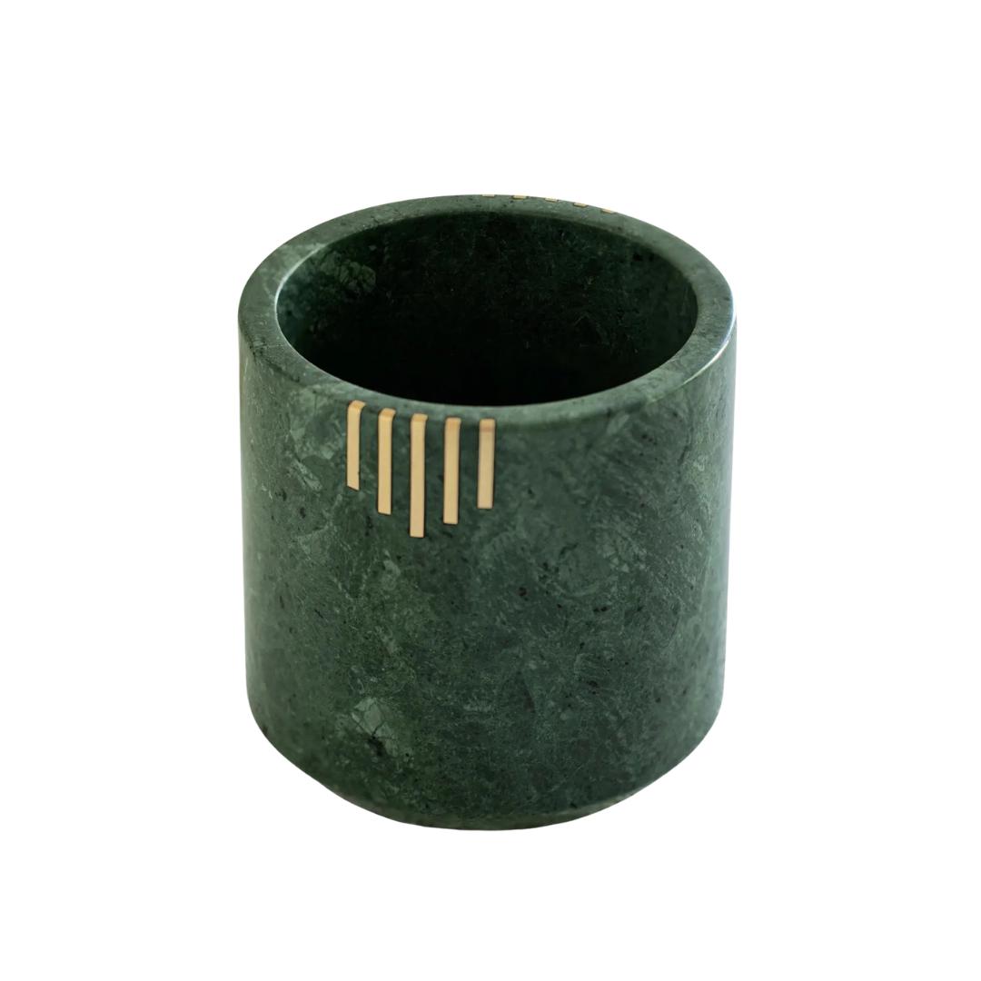 ✨ Features & Benefits: • Authentic Natural Marble: Each piece is handmade and unique, showcasing rich green hues and natural patterns every buyer will love. • Elegant Brass Inlay: Stylish metallic accents add a touch of sophistication to modern or traditional kitchens. • Perfect Kitchen Organizer: Ideal for holding spoons, spatulas, ladles, forks, and other cooking utensils within easy reach. • Premium Gift Choice: A thoughtful housewarming or wedding gift for anyone who appreciates artisan decor and practical storage. • Compact & Functional: Measures approx. 12.5 cm (L) × 12.5 cm (W) × 12.5 cm (H), perfect for countertop or tabletop use.