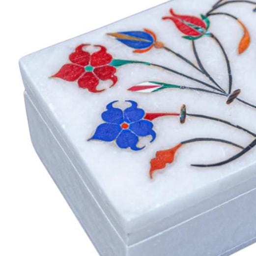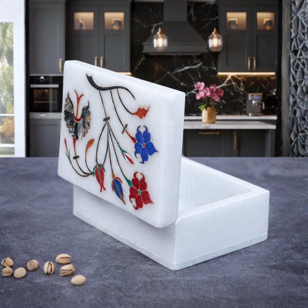 🟩 Artisan Craftsmanship Made from premium marble and adorned with delicate floral inlay designs, this decorative box reflects centuries-old stonework traditions from Uttar Pradesh, India. Each piece is unique, with slight natural variations that add beauty and character.