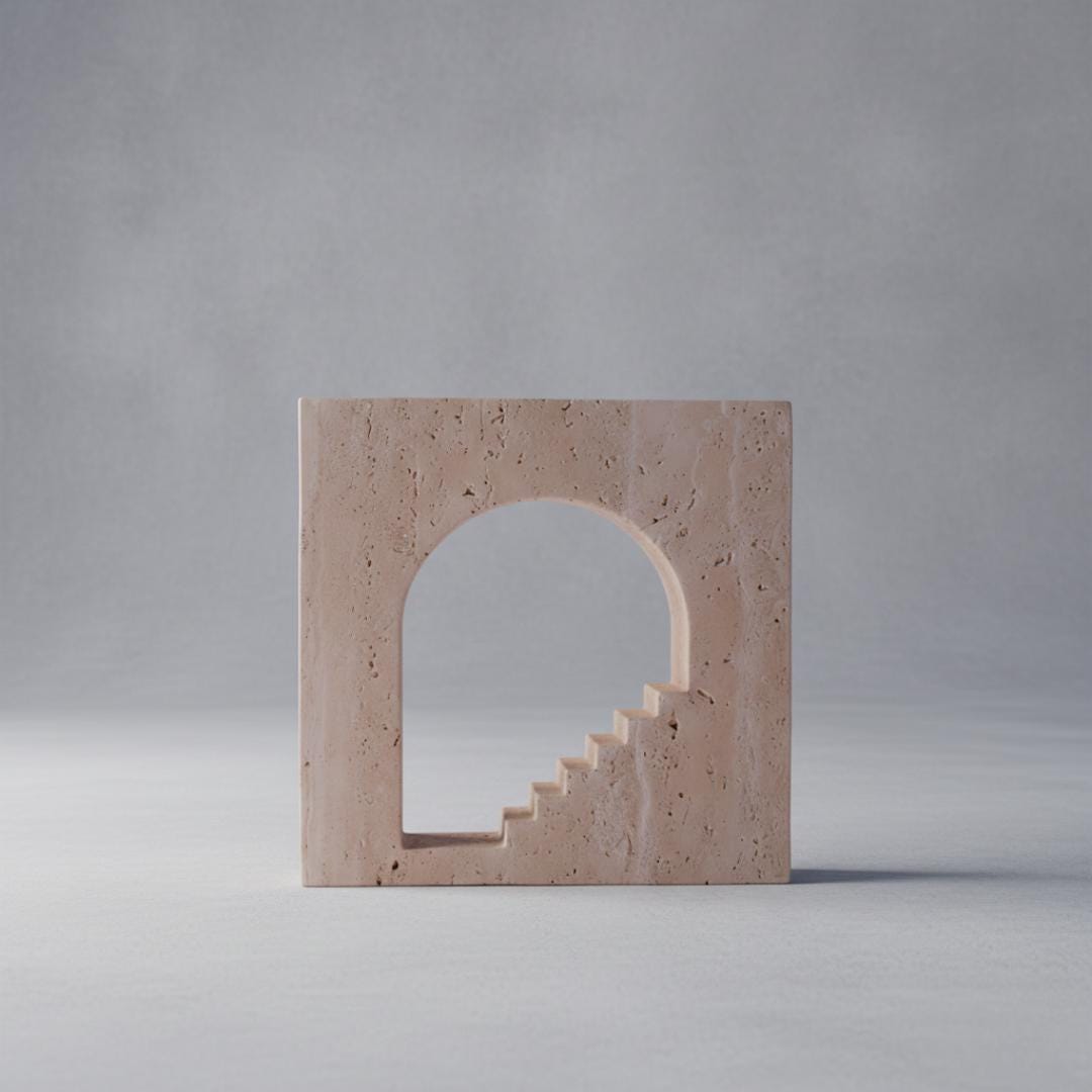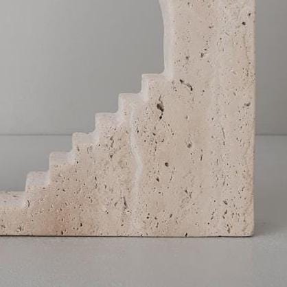 Handmade Travertine Stairway Arch Sculpture, Modern Italian Stone Artifact Decor, Natural Stone Art Accent for Home & Office