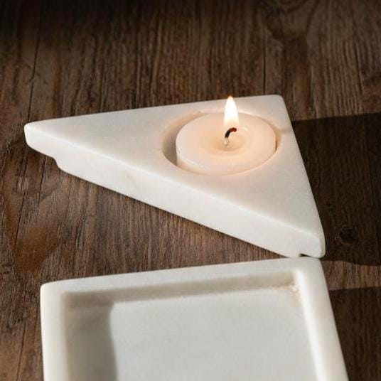 🌟 Why You’ll Love It • Artistic & Functional: Use it to hold jewelry, keys, small keepsakes, or even a tea light candle — a beautiful catchall for everyday essentials. • Symbolic Geometry: Inspired by the ancient Cheonbu concept, the interplay of circle, square, and triangle shapes represents the unity of heaven, earth, and people — bringing a deeper sense of harmony to your space. • Premium Material: Hand‑finished Indian marble with natural veining gives each piece a luxurious look and makes every tray truly one‑of‑a‑kind. • Handcrafted Quality: Meticulously handcrafted by skilled artisans — this tray embodies thoughtful design and enduring craftsmanship.