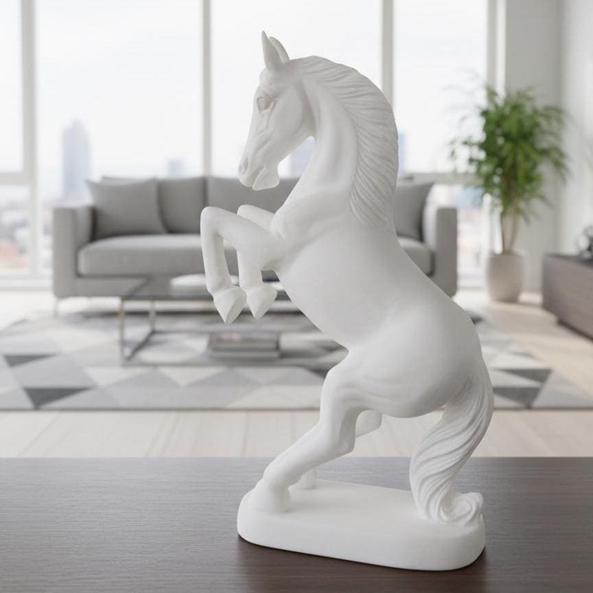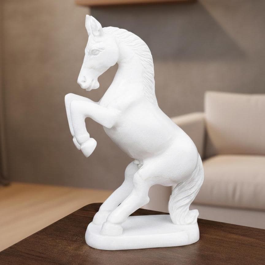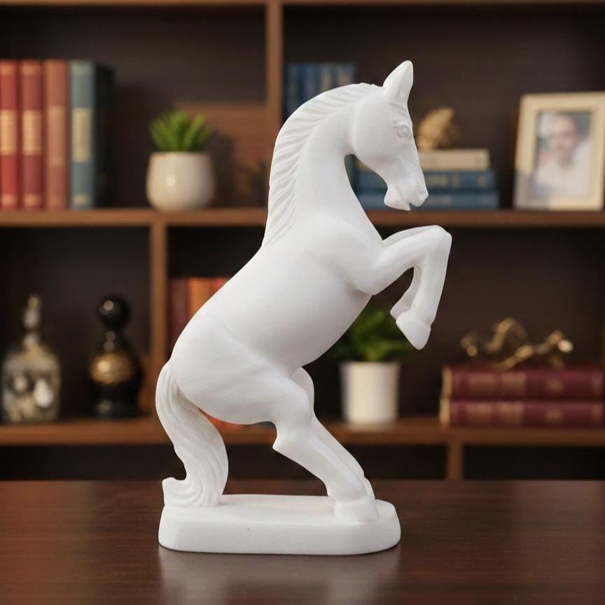 Add a touch of timeless elegance and dynamic energy to your space with this handcrafted white marble rearing horse sculpture. This stunning 10‑inch piece is crafted with precision from premium marble, capturing the strength, grace, and spirit of the majestic horse — a symbol of power, freedom, and nobility.