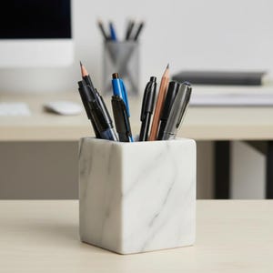 This marble tumbler organizer combines practical utility with artistic beauty. Its substantial weight and polished surface give it a luxurious look while firmly holding items upright, from writing tools and brushes to forks and spoons. Its clean white marble aesthetic blends effortlessly into office desks, makeup vanities, bathroom counters, or kitchen spaces.