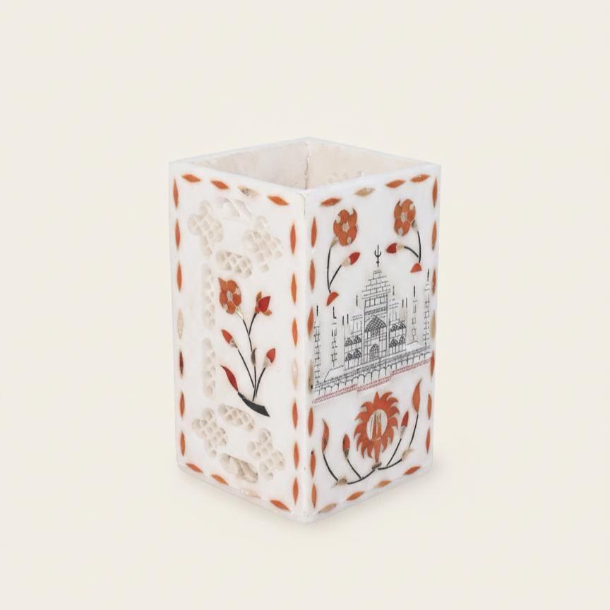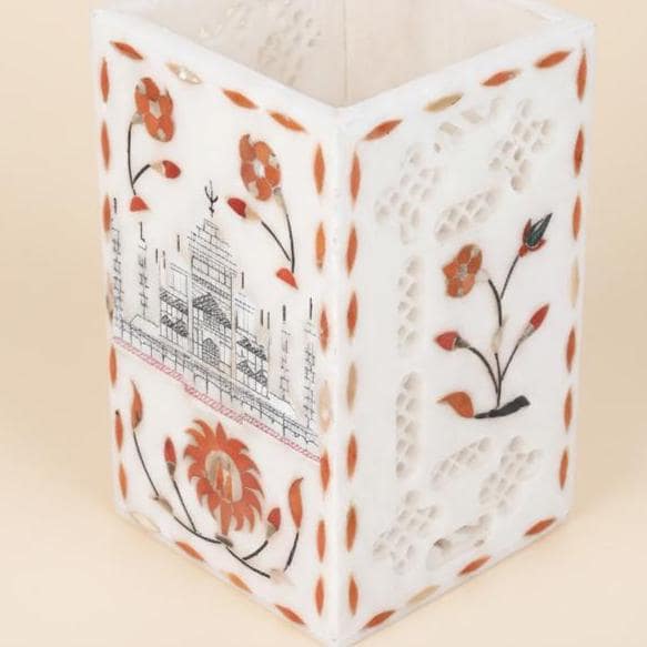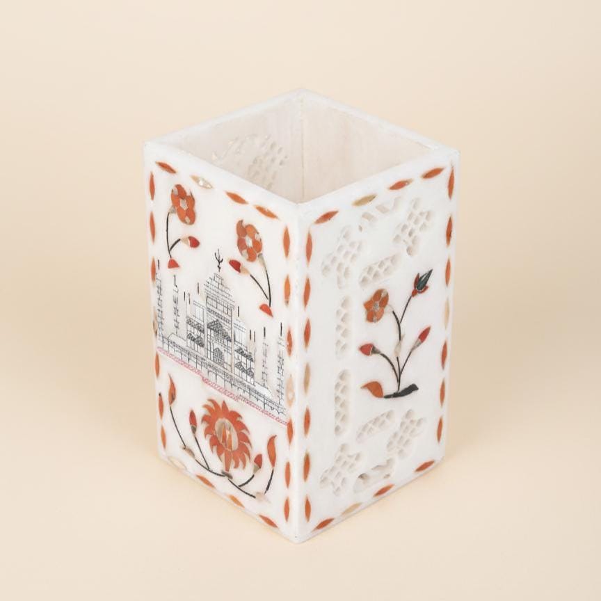 • Material: Premium natural marble — smooth, durable, and timeless • Handmade Craftsmanship: Carefully carved by skilled artisans in Agra • Multipurpose Use: Perfect as a pen holder, toothbrush cup, or cutlery organizer • Adds a refined, minimal touch to any room decor — from modern to classic interiors