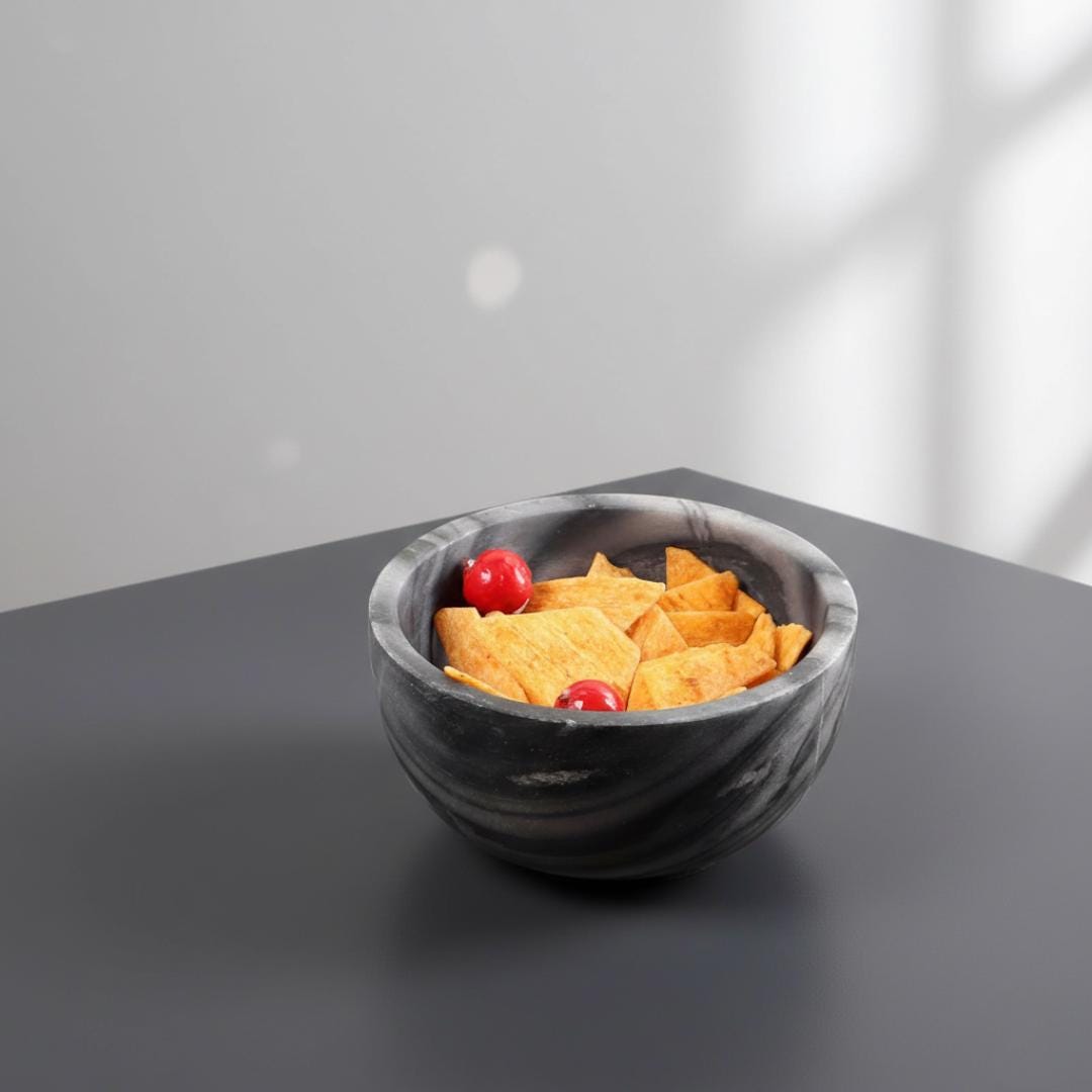 Each bowl is handcrafted by skilled artisans, showcasing the rich marble veining and unique stone variations that make every piece one-of-a-kind. Its solid construction ensures durability, while the refined look elevates both casual and formal settings. Whether you use it for serving fruits, snacks, salads, dry dishes, or simply as a decorative centerpiece, this marble bowl combines practicality with aesthetic allure.