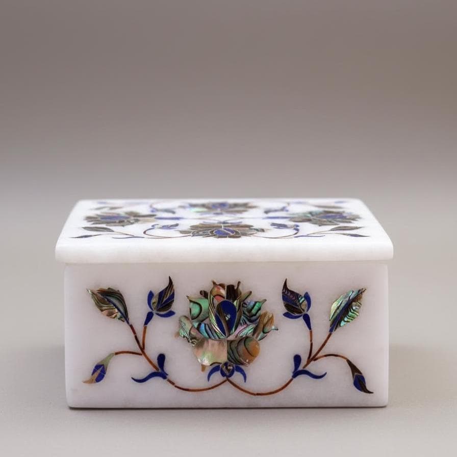 Every marble inlay box is unique — slight variations in pattern and color highlight the handmade nature of this piece. Whether displayed as a decorative accent or used to store precious items, it brings rich artistic heritage and refined elegance to your home.