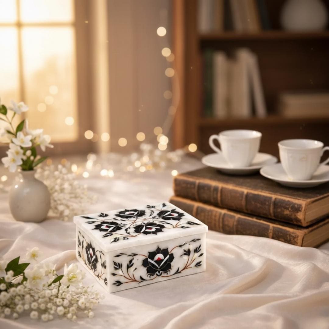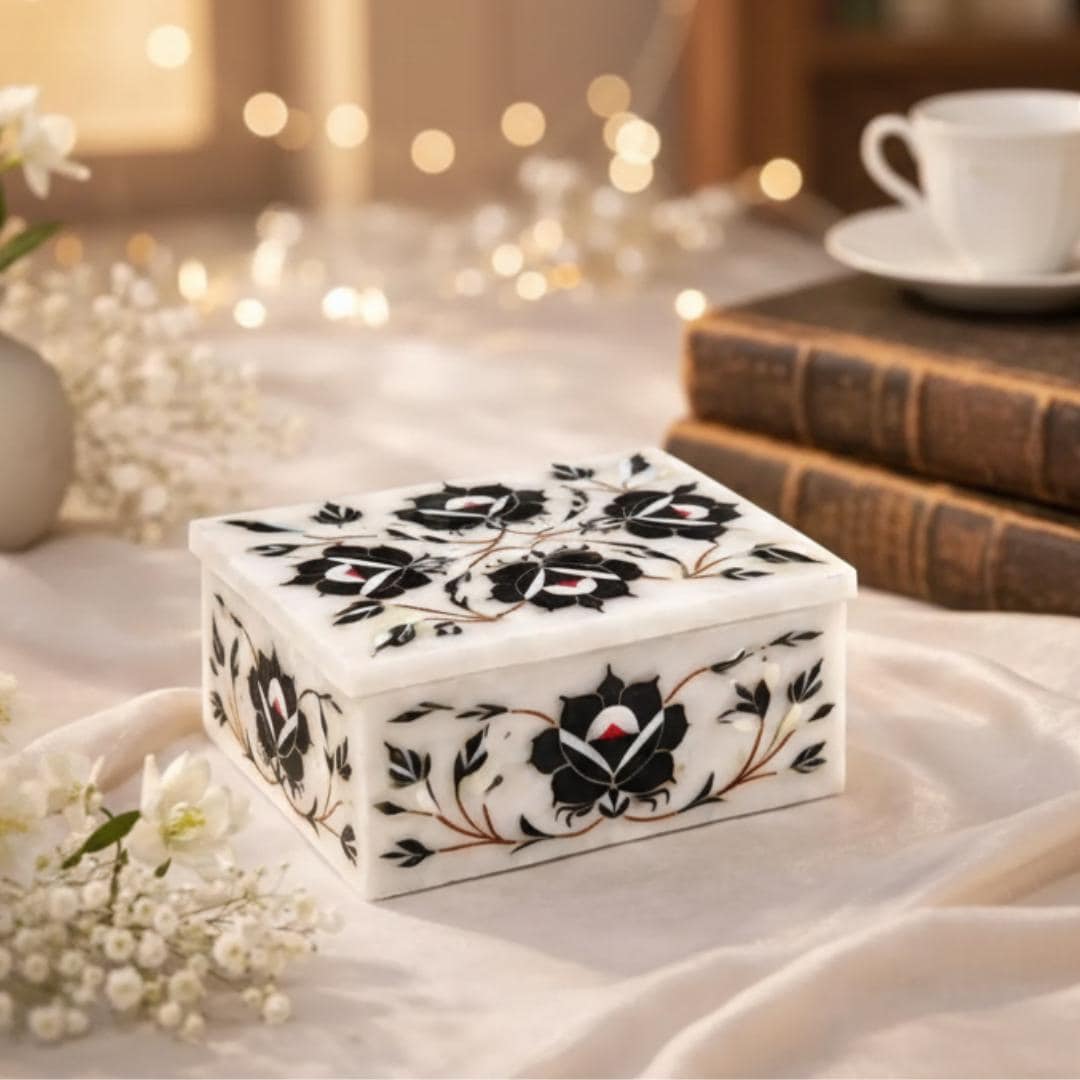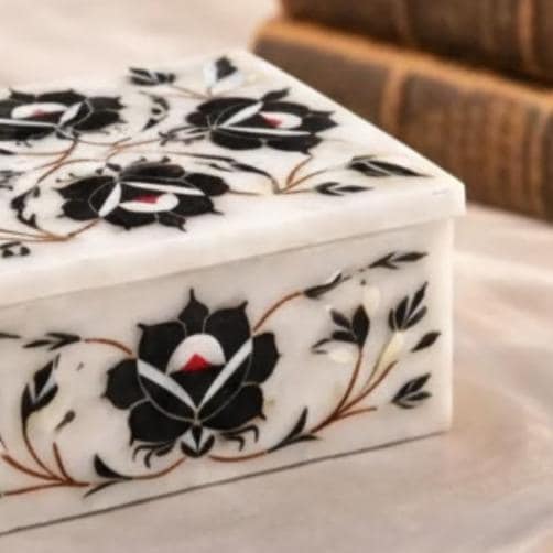 ✨ Why You’ll Love It • Traditional Indian craftsmanship with classic pietra dura design • Natural marble with detailed floral stone inlays • Unique, heirloom gift and functional storage piece • Ideal for jewelry, keepsakes, and treasured collectibles