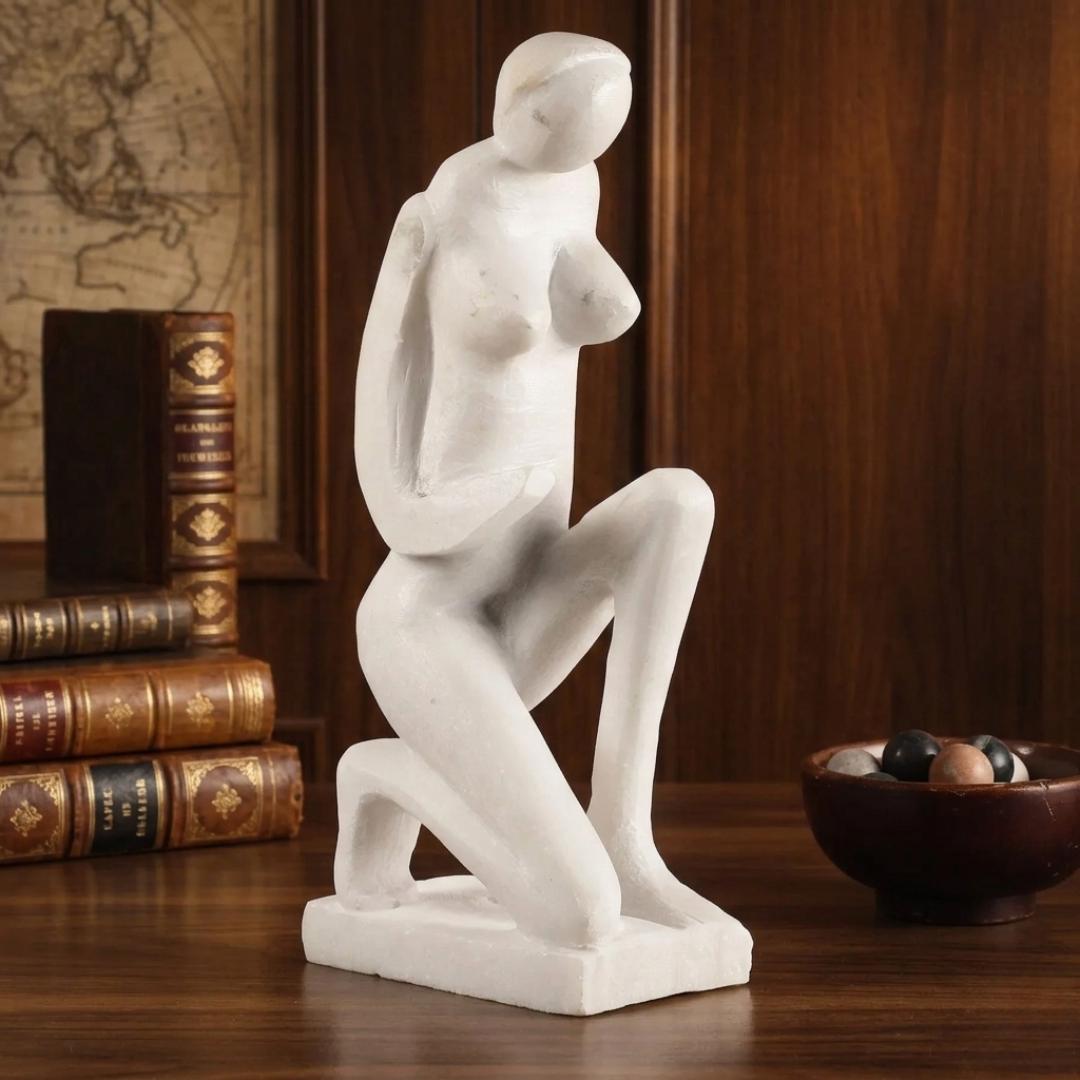 Handcrafted Decorative White Marble Artwork – Elegant Statement Sculpture for Home Decor, Luxurious Modern Marble Accent Piece