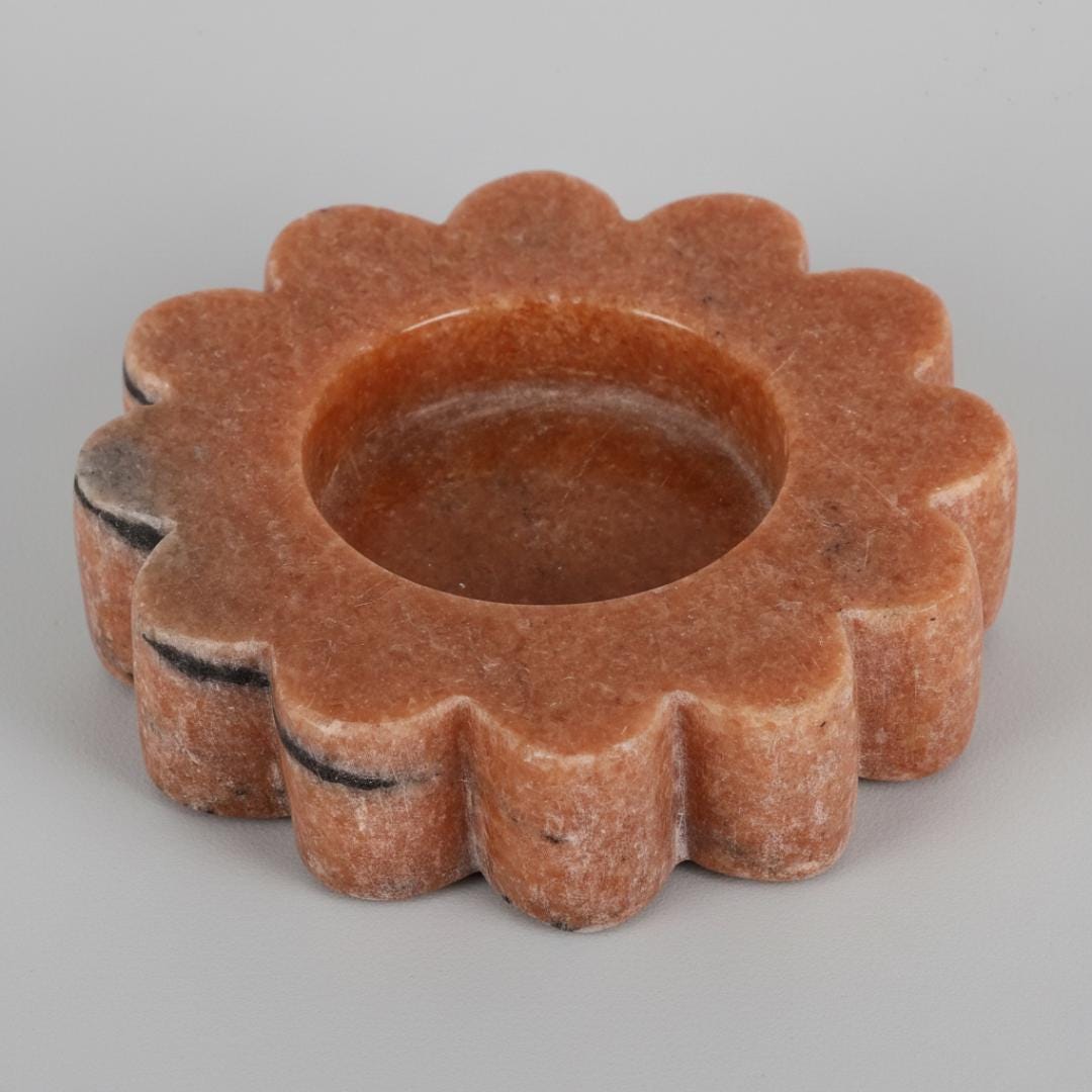• Premium Natural Marble: Durable carved stone with elegant texture and beautiful variation in color and veining. • Floral Design Accent: Artistic flower-inspired shape that elevates candlelight with charm and style. • Ambient Lighting: Ideal for tea light and votive candles to create serene light for dinners, gatherings, or quiet nights at home. • Versatile Decor Piece: Works beautifully in living rooms, dining areas, bedrooms, entryways, or as symbolic décor for events. • Perfect Gift: A thoughtful present for housewarmings, weddings, holidays, anniversaries, birthdays, and décor lovers.