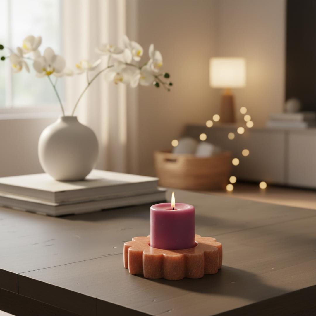 Whether placed on your dining table, mantel, coffee table, shelf, or bedroom nightstand, this floral candle accent brings a cozy, ambient mood to everyday life and special occasions alike. Its soft, smooth finish and natural veining make every piece unique — perfect for lovers of minimalist, modern, rustic, or classic décor styles.