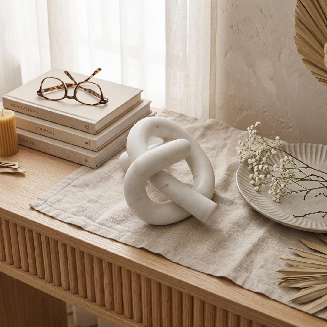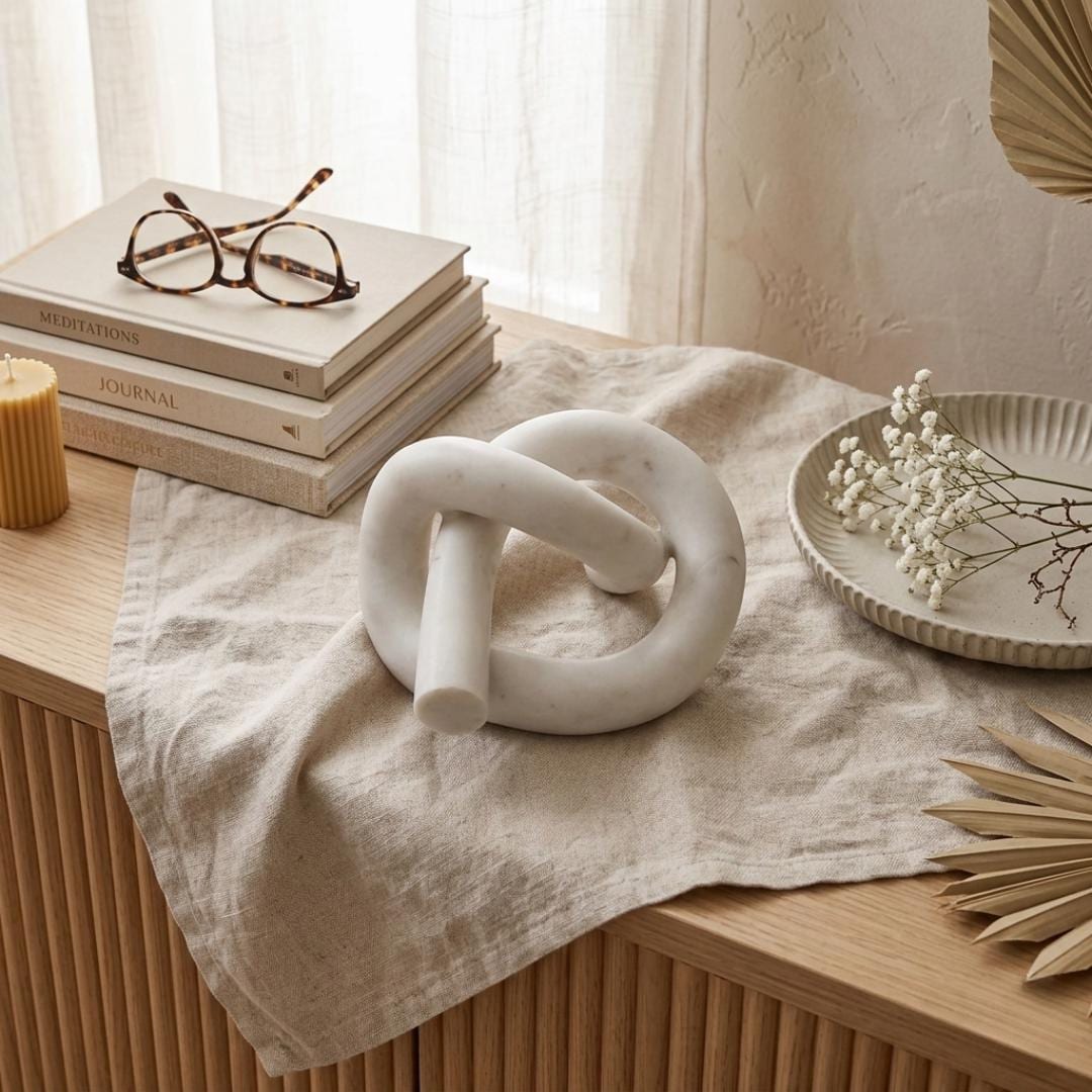 Place this marble ribbon sculpture on your coffee table, console, bookshelf, or work desk. It pairs beautifully with neutral palettes, wood accents, metallic details, and lush greenery — adding depth, balance, and artistic flair to your curated space.