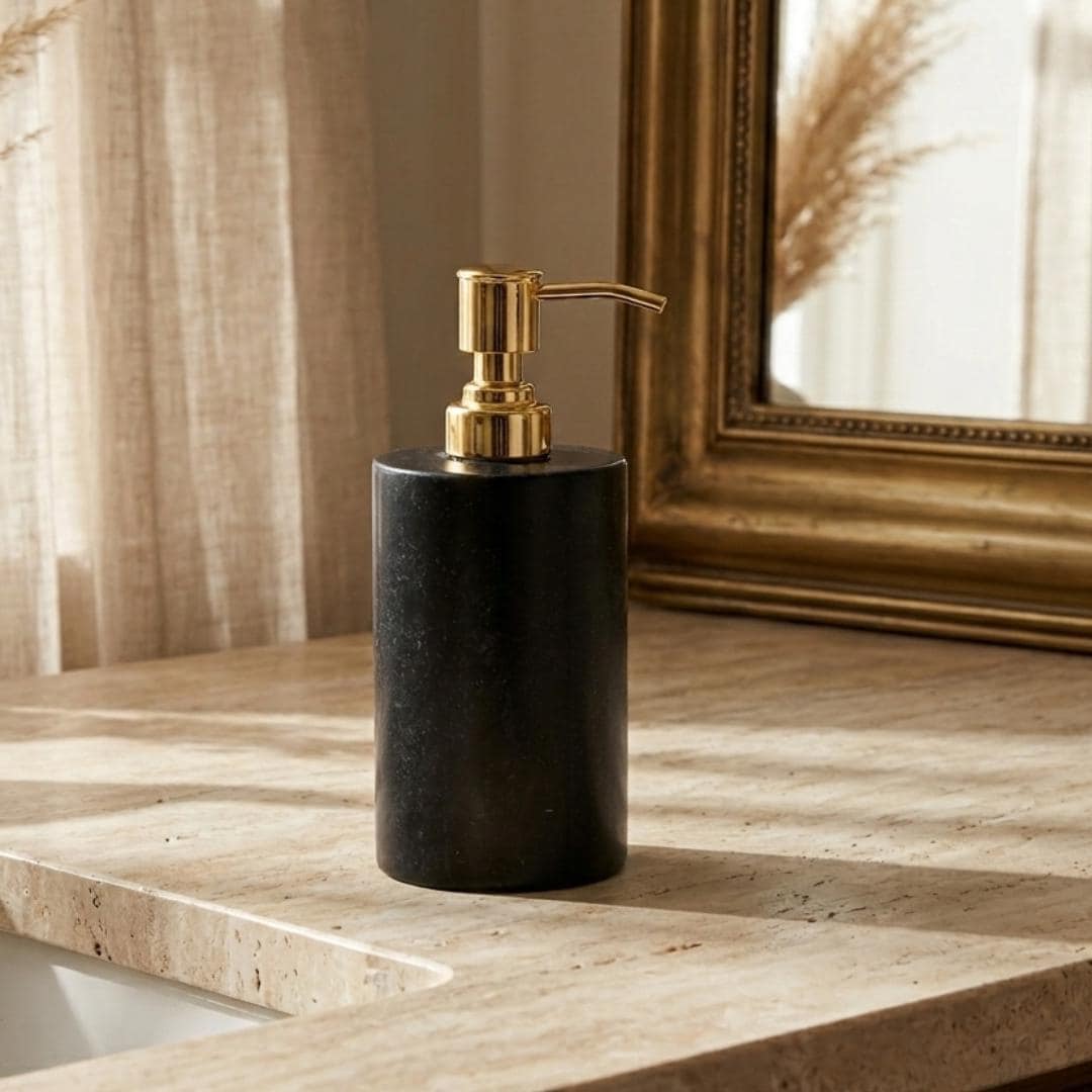 Elevate your everyday routine with this Luxury Black Marble Soap Dispenser with Stainless Steel Pump — a sophisticated bathroom and kitchen accessory that seamlessly blends function and style. Crafted from premium hand-polished black marble, this elegant dispenser adds a touch of contemporary luxury to your countertop décor while providing lasting utility.