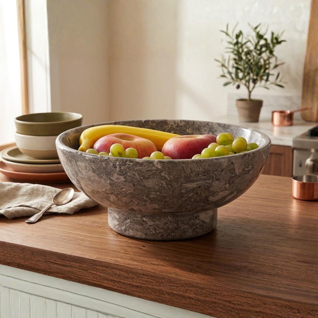• Kitchen countertop decor • Dining table centerpiece • Coffee table styling • Fruit display bowl • Salad or snack serving dish • Apartment and modern home decor