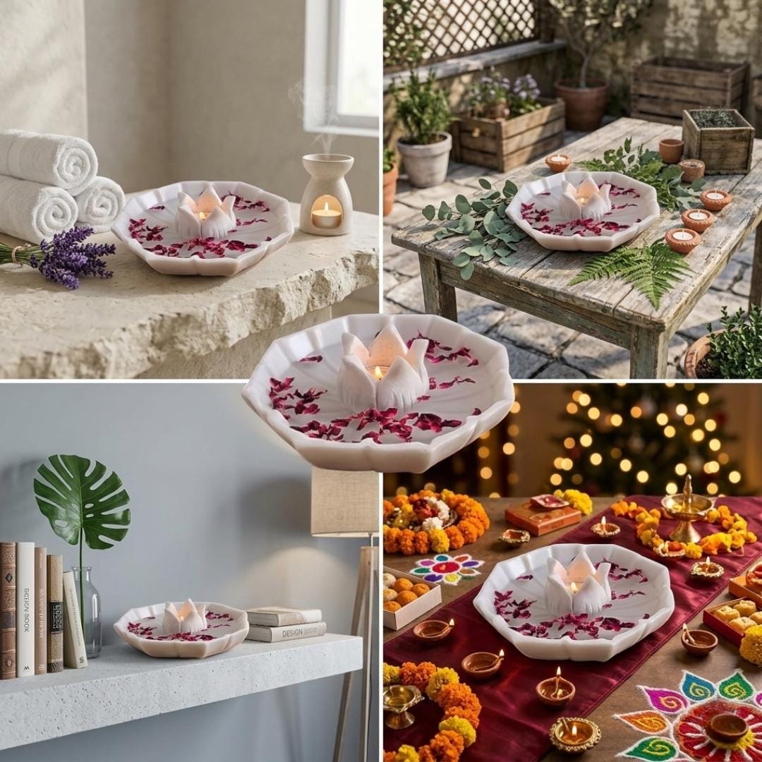 • Coffee table centerpiece • Floating candle decoration • Flower or potpourri display • Meditation or spiritual decor • Dining table styling • Housewarming and wedding gifts