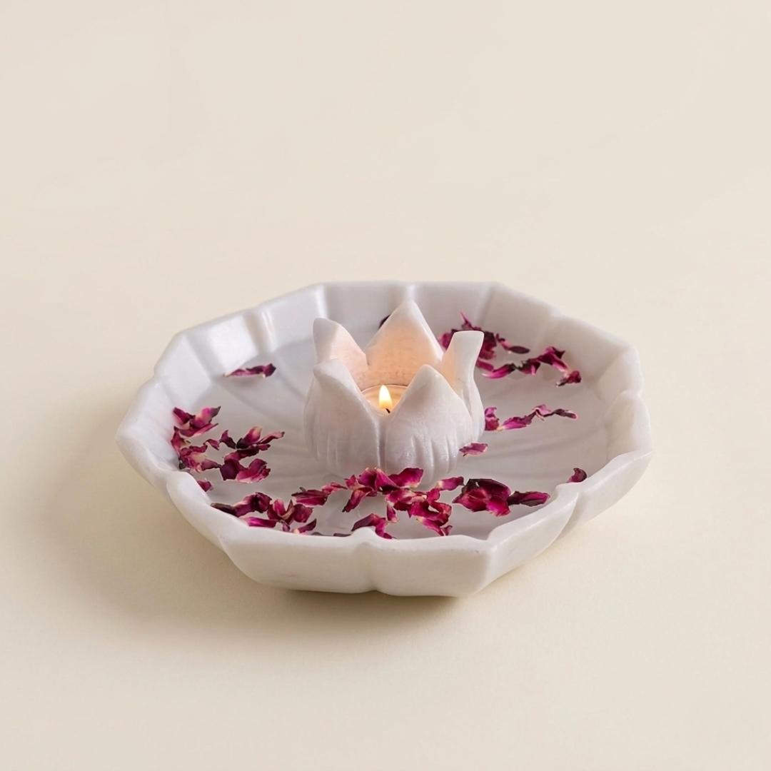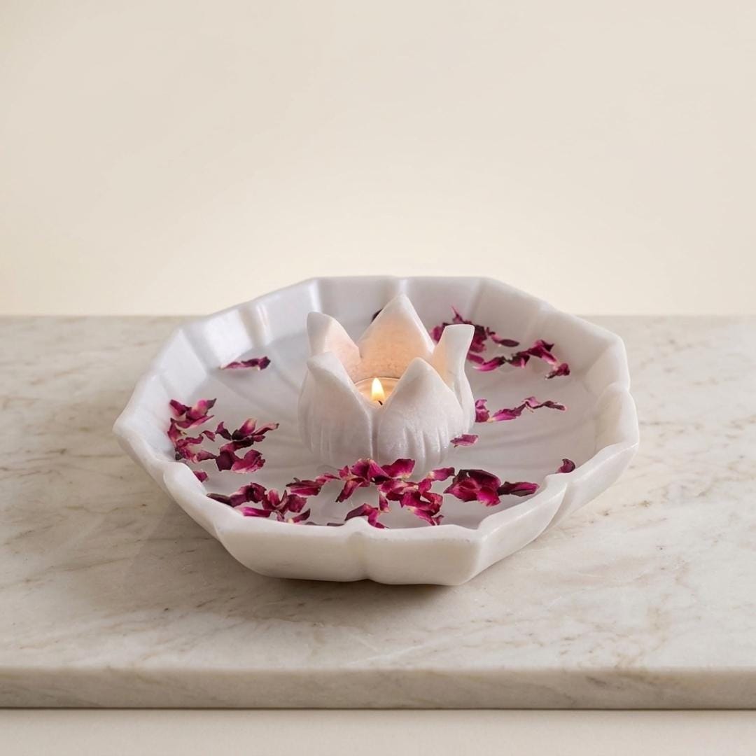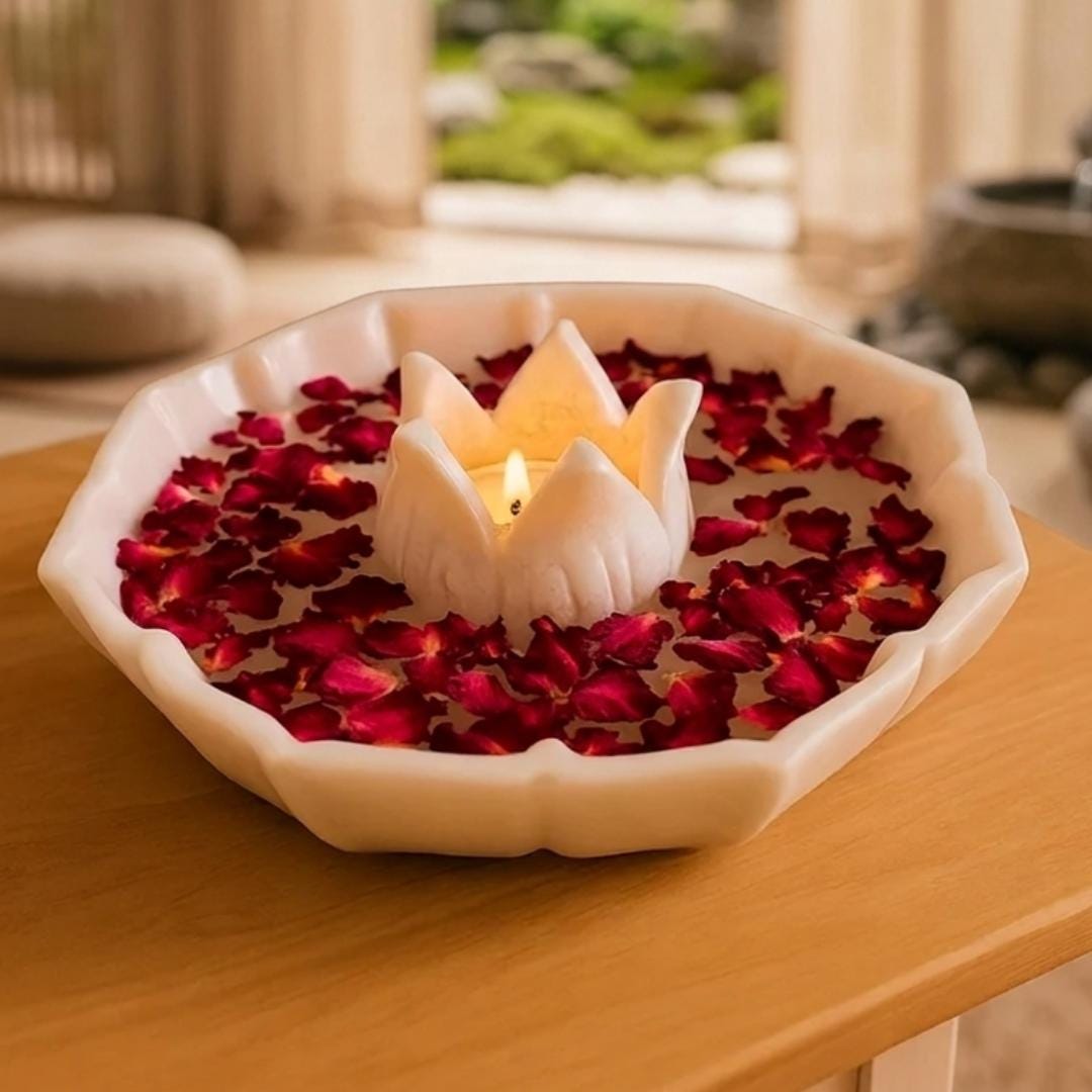 Perfect for decorating coffee tables, dining spaces, meditation areas, or entryways, this versatile marble bowl can be used as a floating candle bowl, flower bowl, fruit bowl, jewelry holder, or elegant centerpiece. The lotus shape adds a calm and luxurious aesthetic that complements modern, traditional, or spiritual interiors.