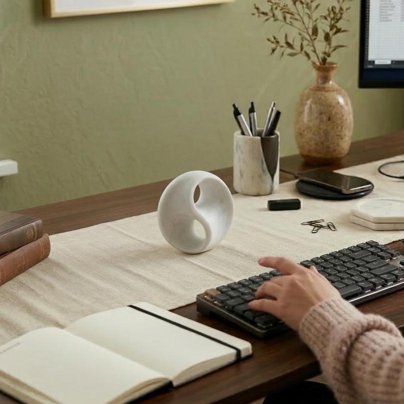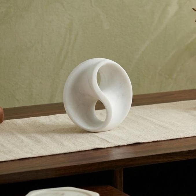 This White Marble Infinity Circle Sculpture is a beautifully hand‑carved abstract piece crafted from premium white marble, designed to add both aesthetic charm and calm energy to any room. Its smooth, continuous circular form draws inspiration from the infinity symbol — representing eternal balance, cosmic harmony, and unified flow — making it a meaningful accent for meditation spaces, modern interiors, or thoughtful gift collections.