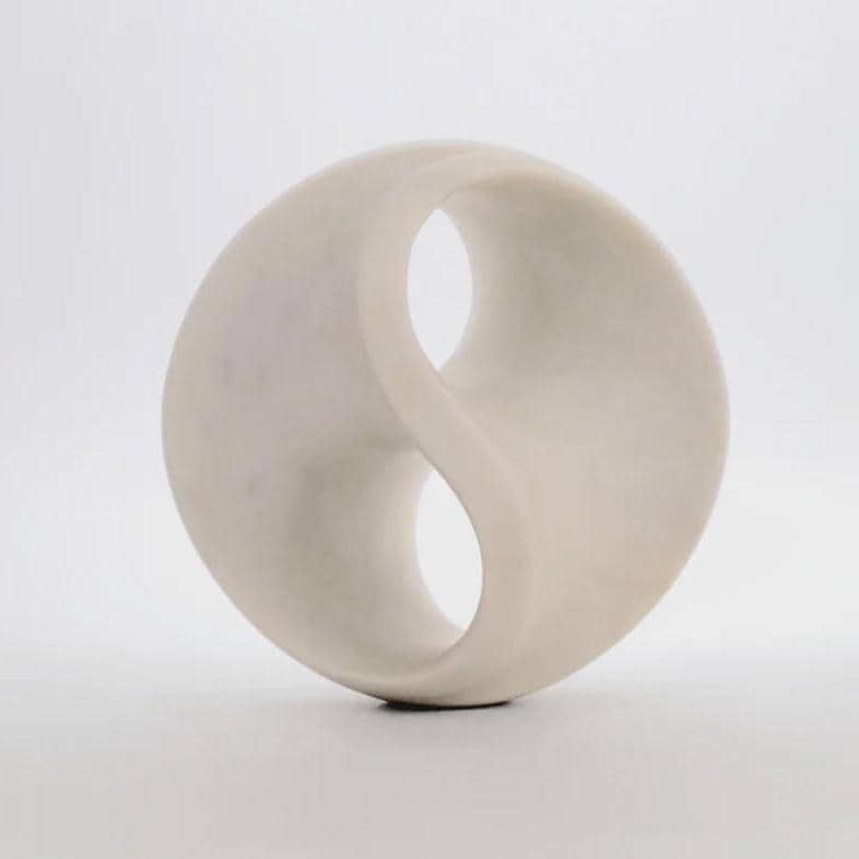 Handcrafted White Marble Infinity Circle Sculpture • Abstract Spiritual Decor • Small Stone Art Statue • Minimalist Geometry Gift