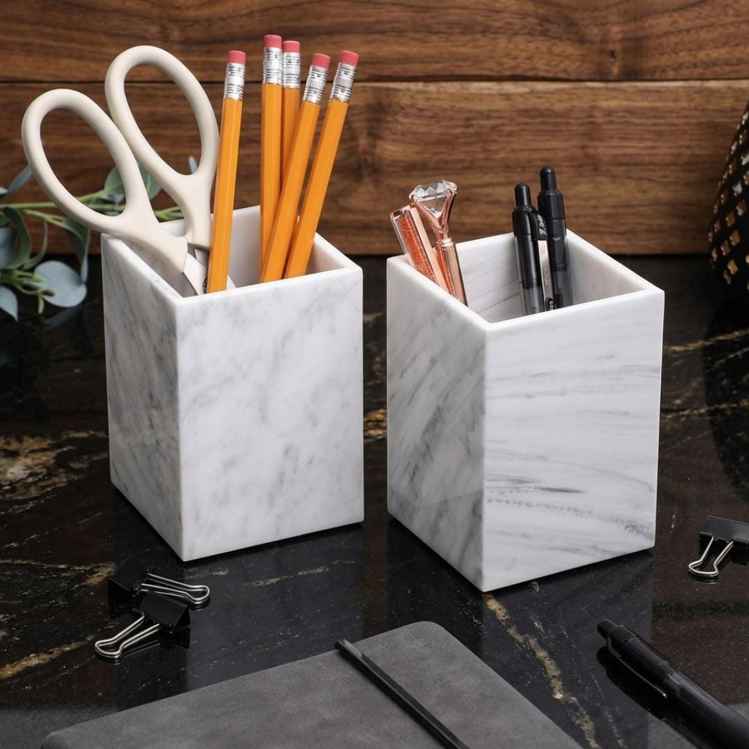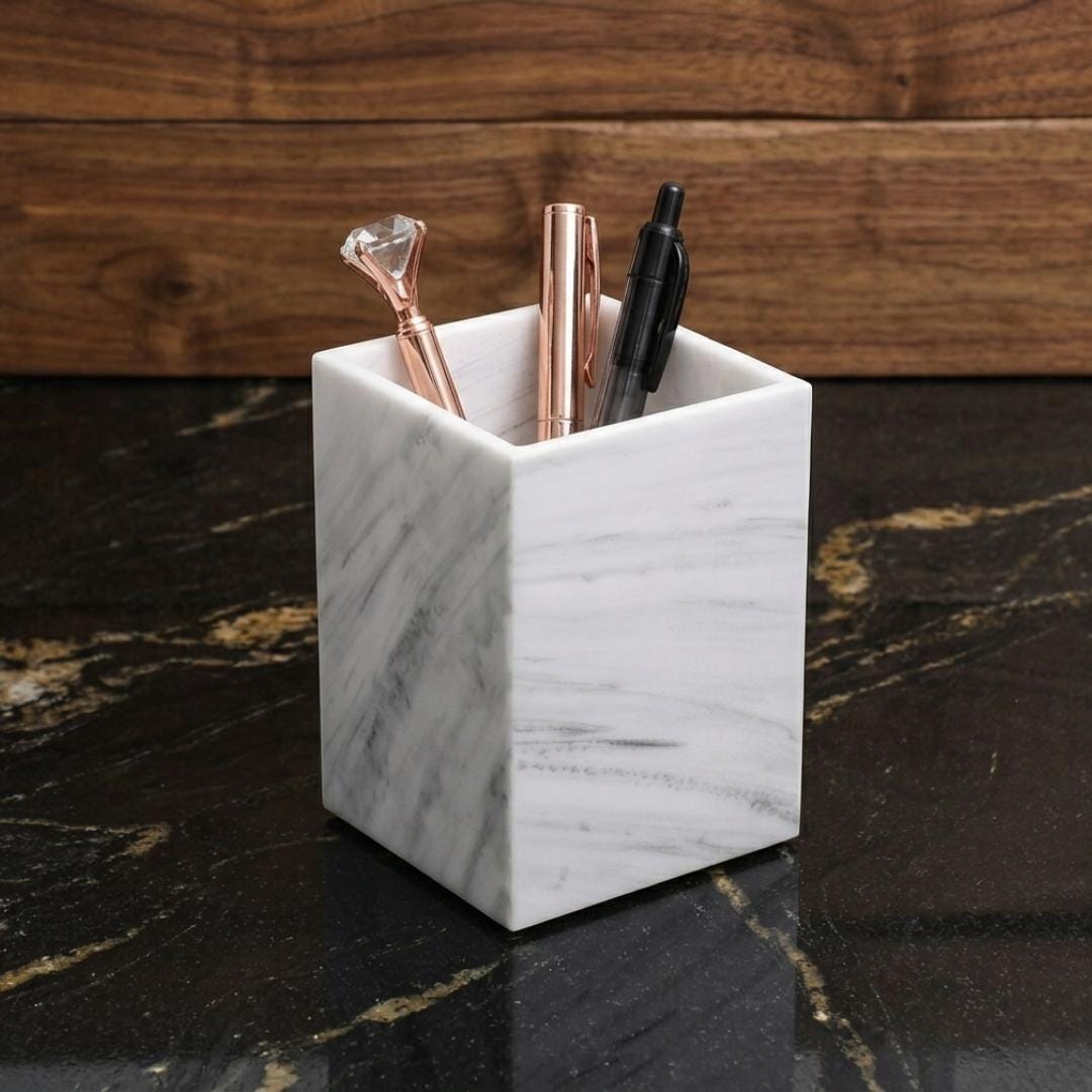 ✔ Handmade marble craftsmanship ✔ Elegant natural stone design ✔ Durable and long-lasting material ✔ Keeps desk neat and organized ✔ Perfect combination of decor and functionality