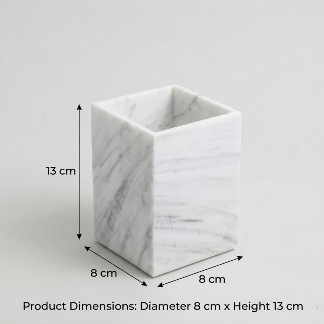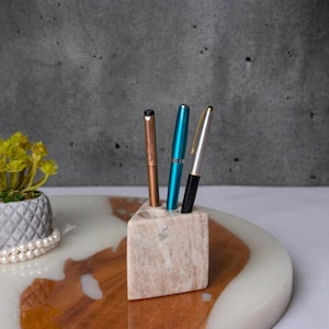 Add elegance and organization to your workspace with this handmade marble pen stand set of 2. Crafted from natural marble stone, these stylish pencil holders are perfect for storing pens, pencils, markers, and other stationery items while enhancing the aesthetic of your desk.