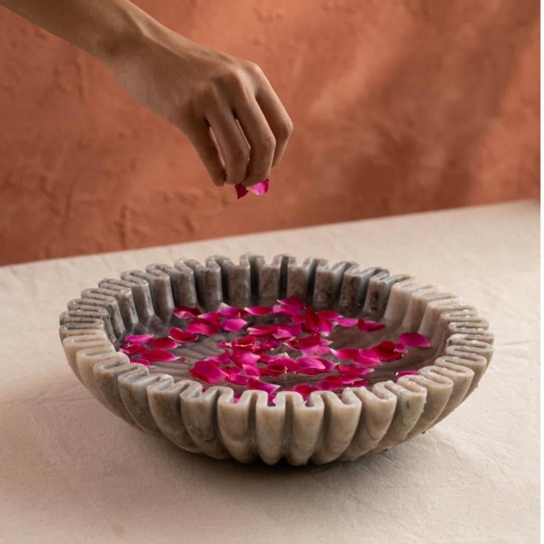 ✔ Handcrafted natural marble design ✔ Elegant centerpiece for home décor ✔ Ideal for floating candles and flowers ✔ Durable and timeless stone craftsmanship ✔ Suitable for festivals and everyday decoration