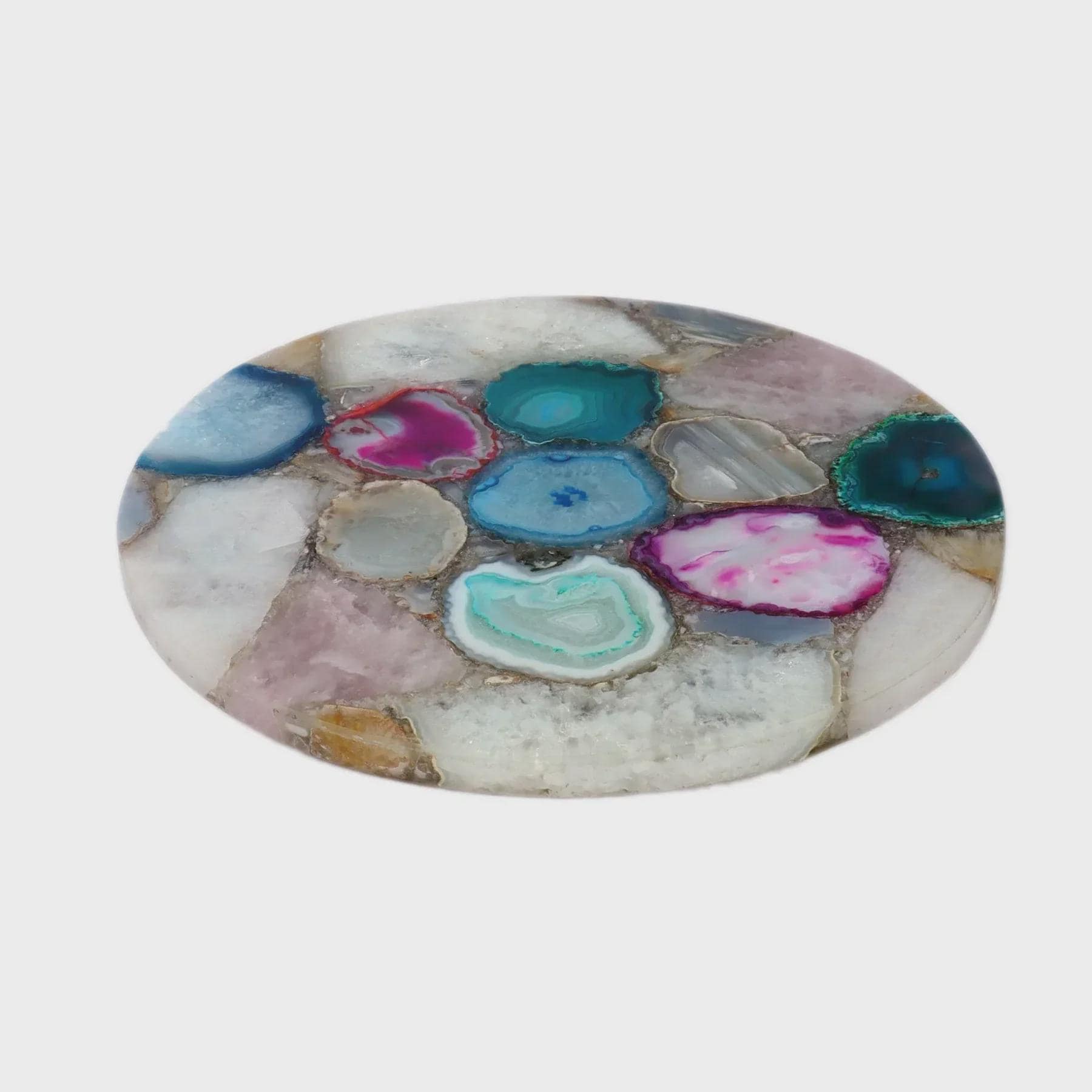 Crafted from high‑quality multicolor agate, each platter displays a unique blend of colors and striking natural patterns. No two pieces are the same — making your tray truly one‑of‑a‑kind.