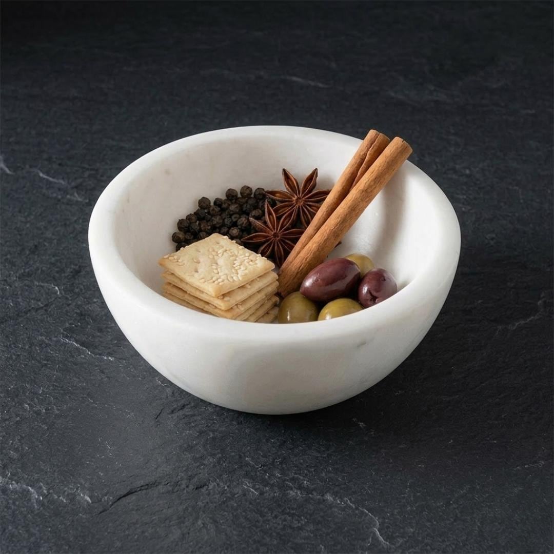 Handmade White Marble Multi-Utility Serving Bowl – 4 Inch Small Marble Bowl for Snacks, Fruits, Sweets, Home Décor