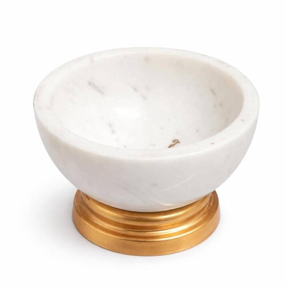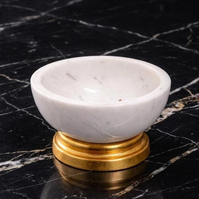 Handmade White Marble Snack Bowl with Gold Base – Decorative Marble Serving Bowl, Luxury Tabletop & Dry Fruits Gift