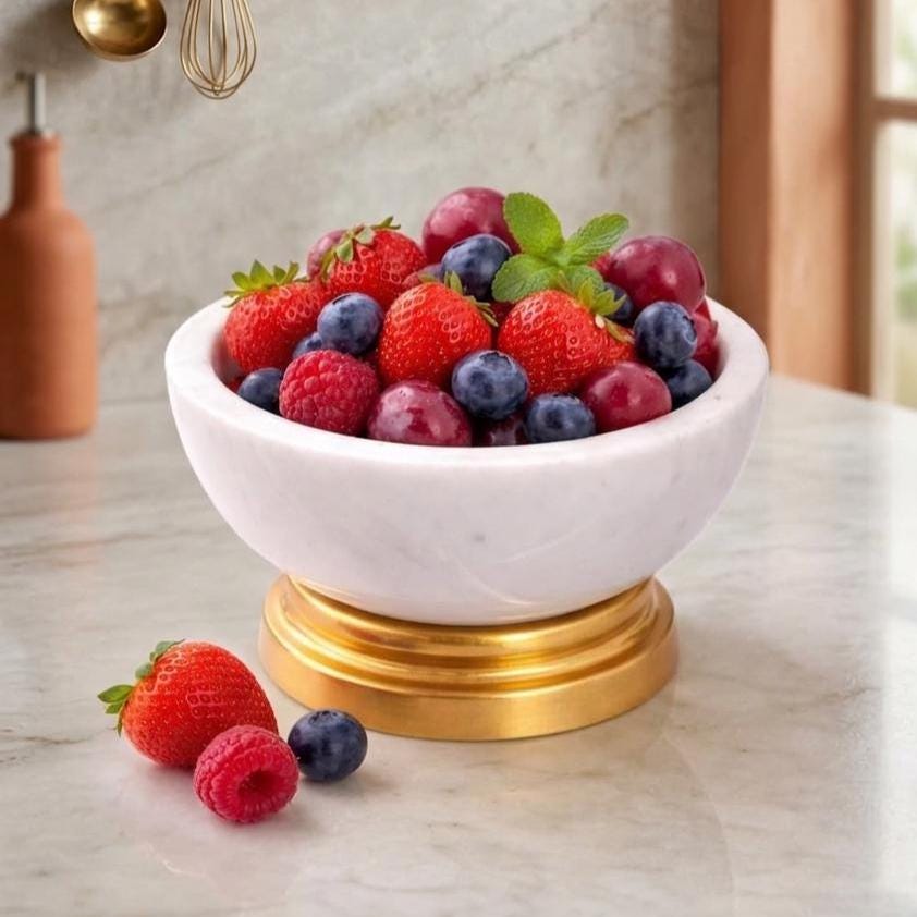 🎨 Style & Use: Whether you’re hosting a get‑together or styling your kitchen counter or coffee table, this marble bowl offers both function and aesthetic appeal. The contrast of white stone and metallic gold tone gives it a refined look that enhances any décor.