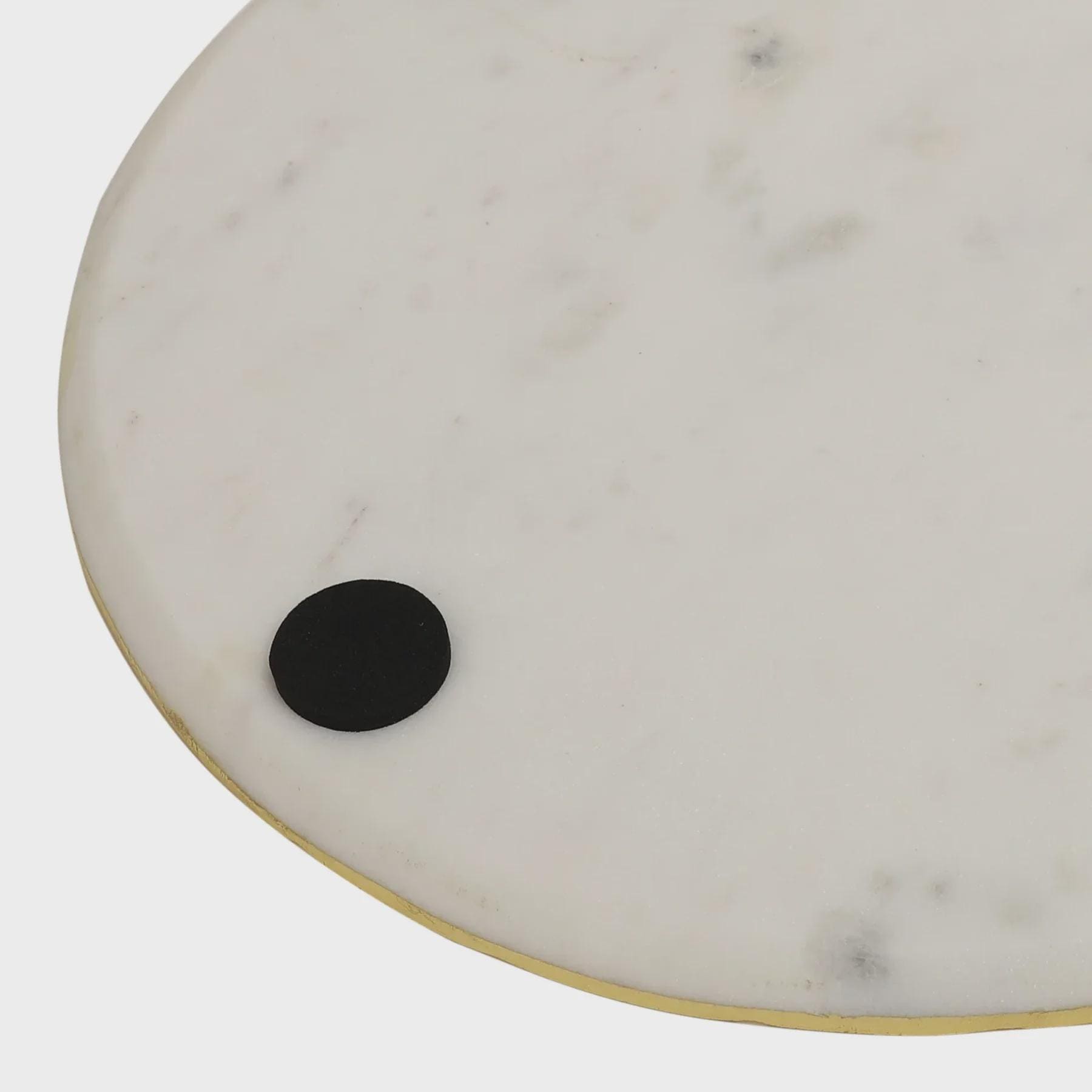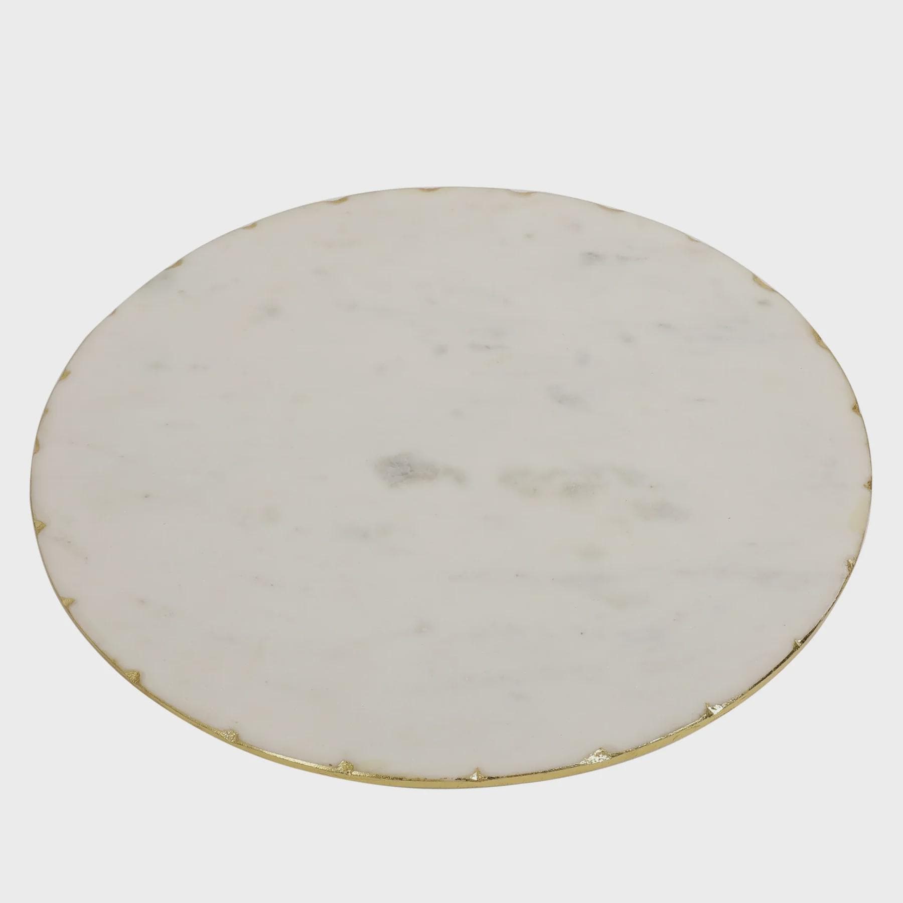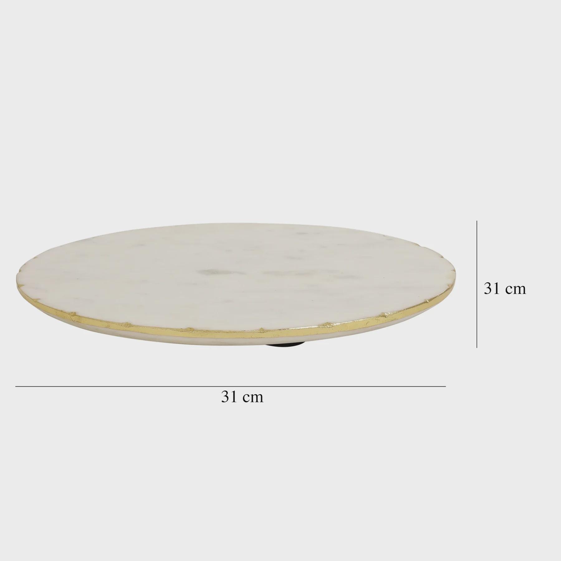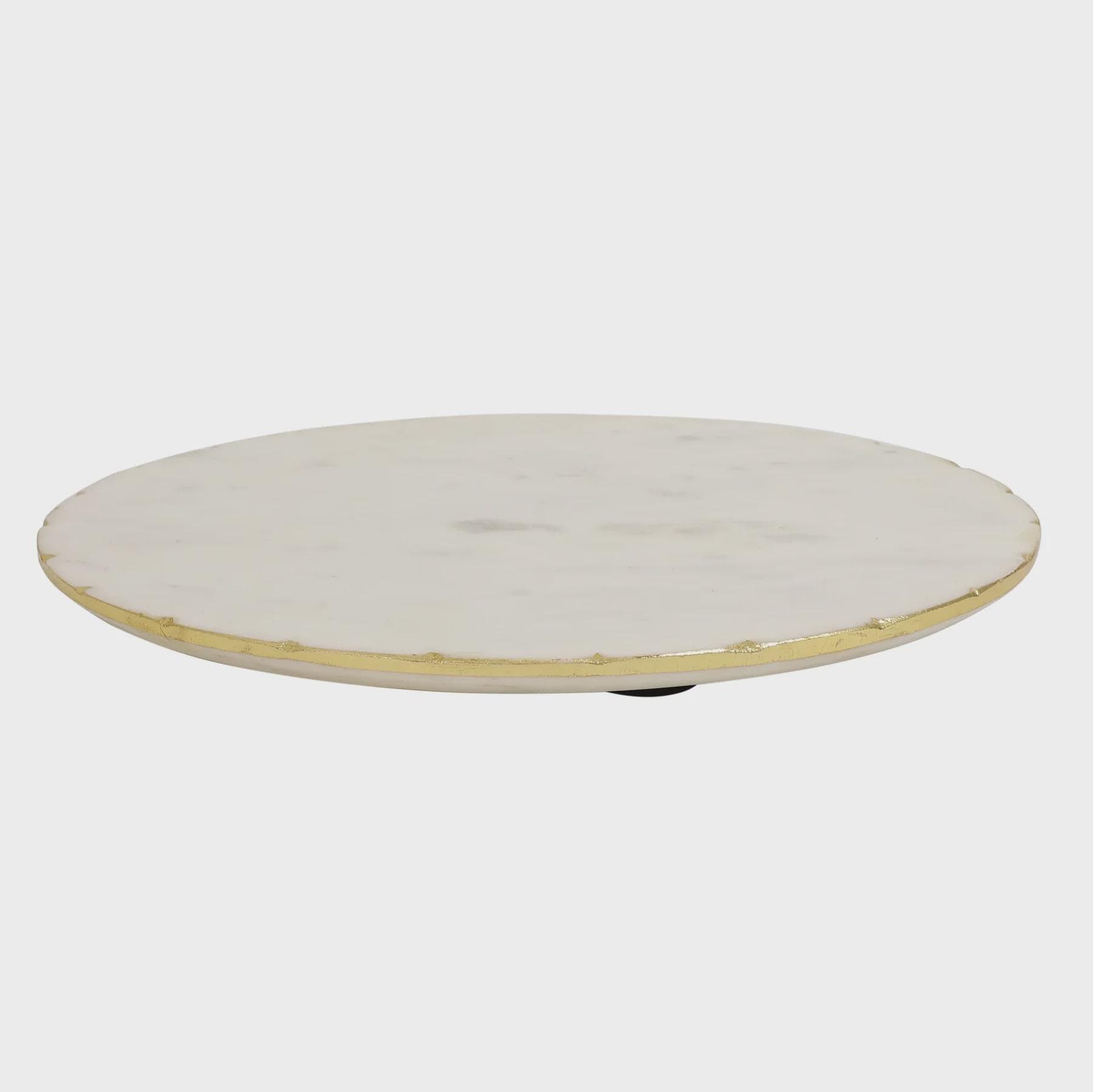 Crafted from solid white marble with a smooth, polished finish, this 12 inch platter features shimmering gold foil accents that catch the light and add a luxurious touch to your décor. Its substantial weight and durable surface make it perfect for everyday use or special occasions.