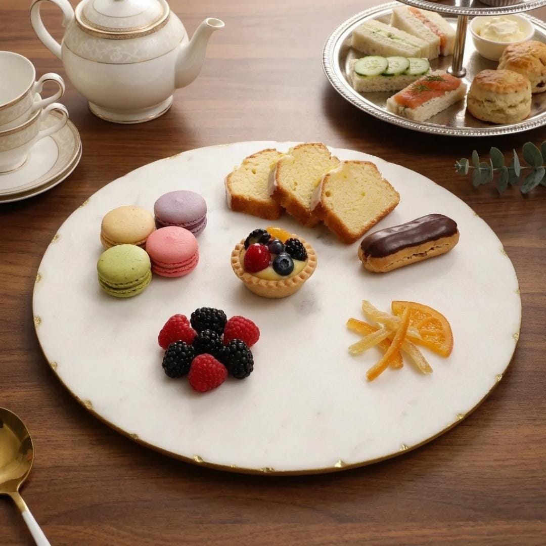Handcrafted from premium marble and accented with delicate gold foil details, this multipurpose piece brings both function and elegance to your kitchen and table settings. Whether you’re serving appetizers, desserts, cheese, or protecting surfaces from hot pots and pans, it’s a stylish must‑have for your home.