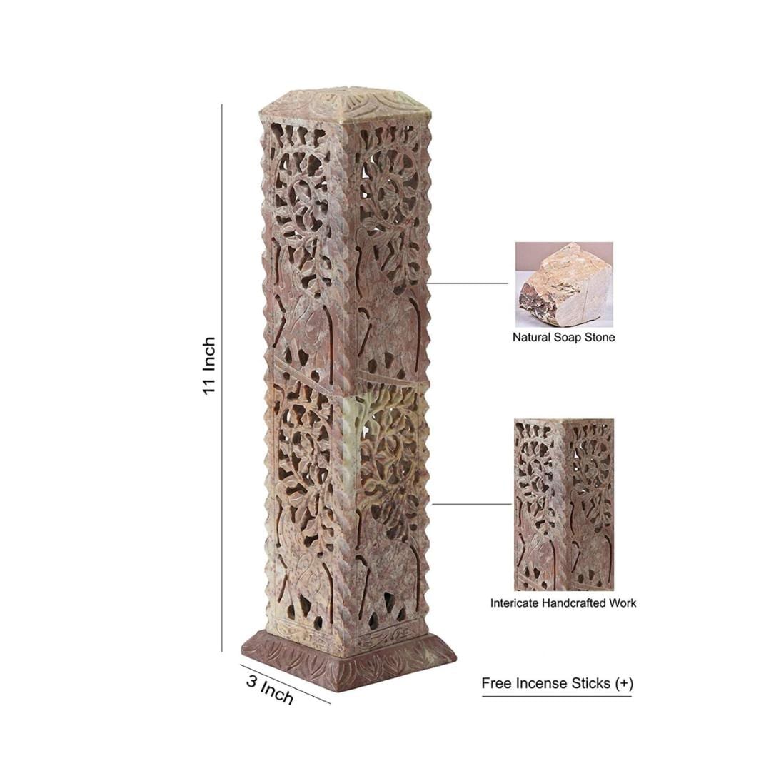 This 11-inch decorative masterpiece is more than just an incense burner; it is a tribute to traditional Indian craftsmanship. Each side of this tower is intricately hand-chiseled with detailed Elephant motifs and floral vines, creating a "Jali" (lattice) effect that is both visually stunning and spiritually significant.