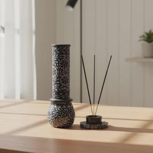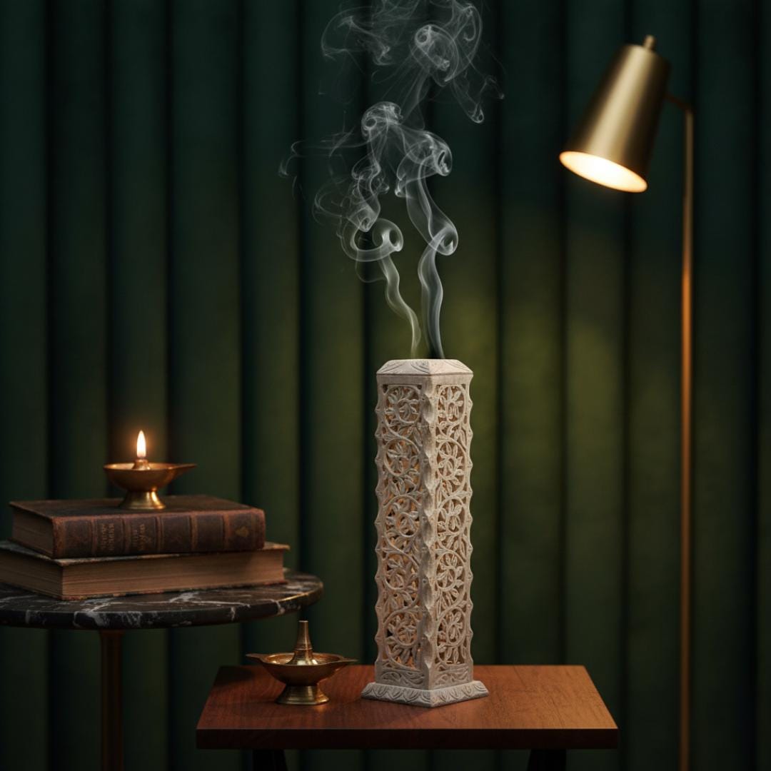 Dual Functionality: Designed to serve as both an incense stick burner and a pillar candle holder. The hollow tower fits perfectly over the base to contain ash or create a beautiful "lantern" effect when a candle is lit inside.