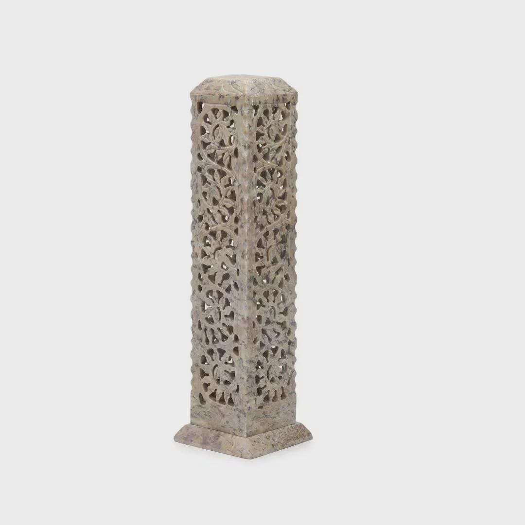 Transform your space into a sanctuary of calm with our Hand-Carved Soapstone Incense & Candle Holder Tower.