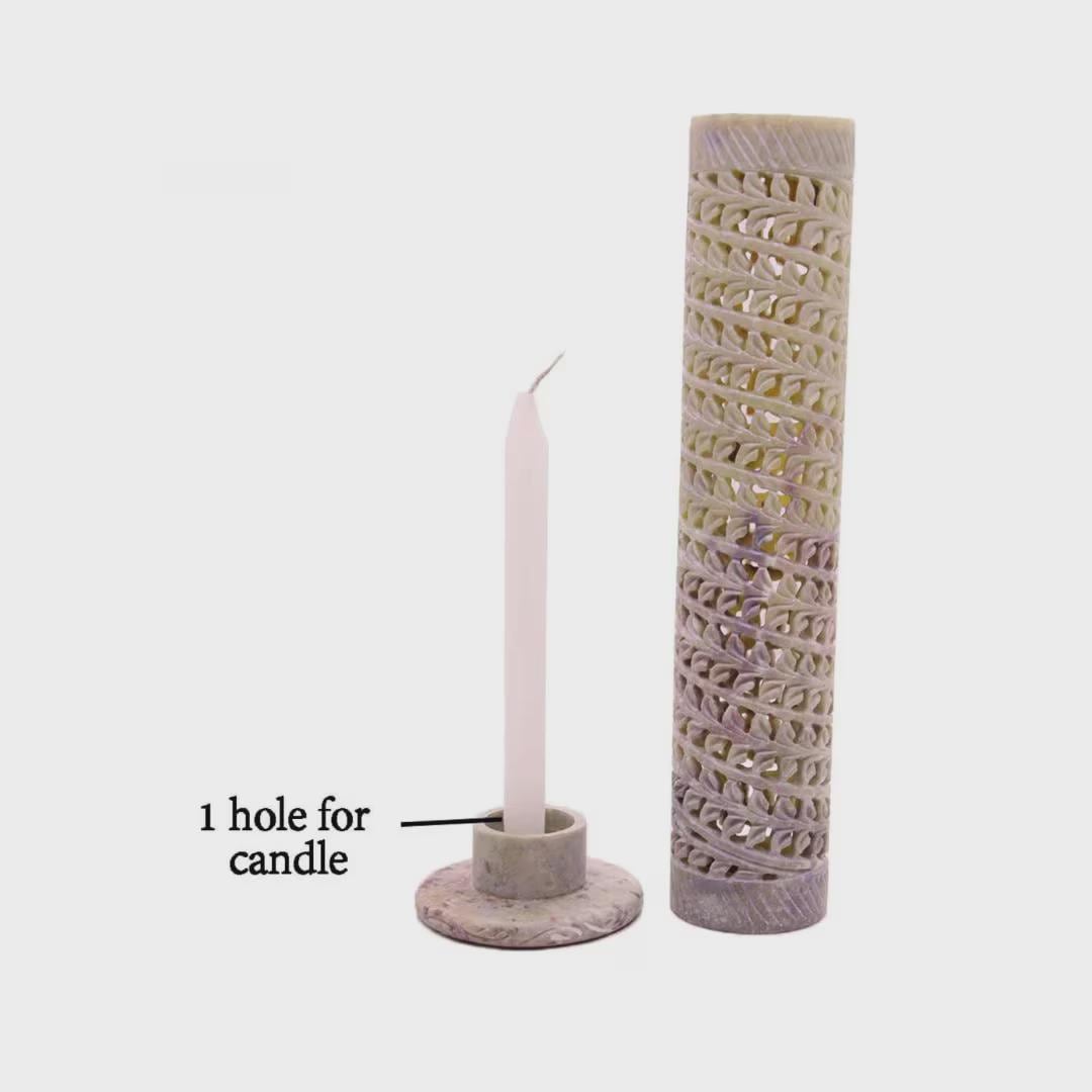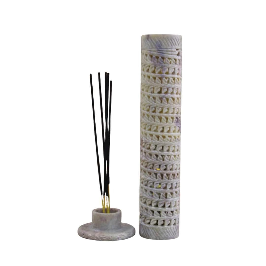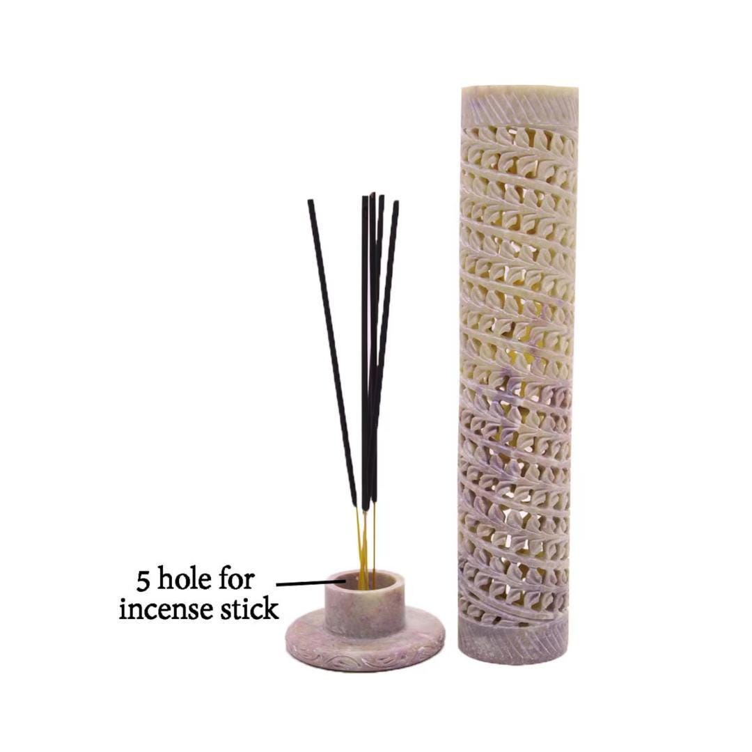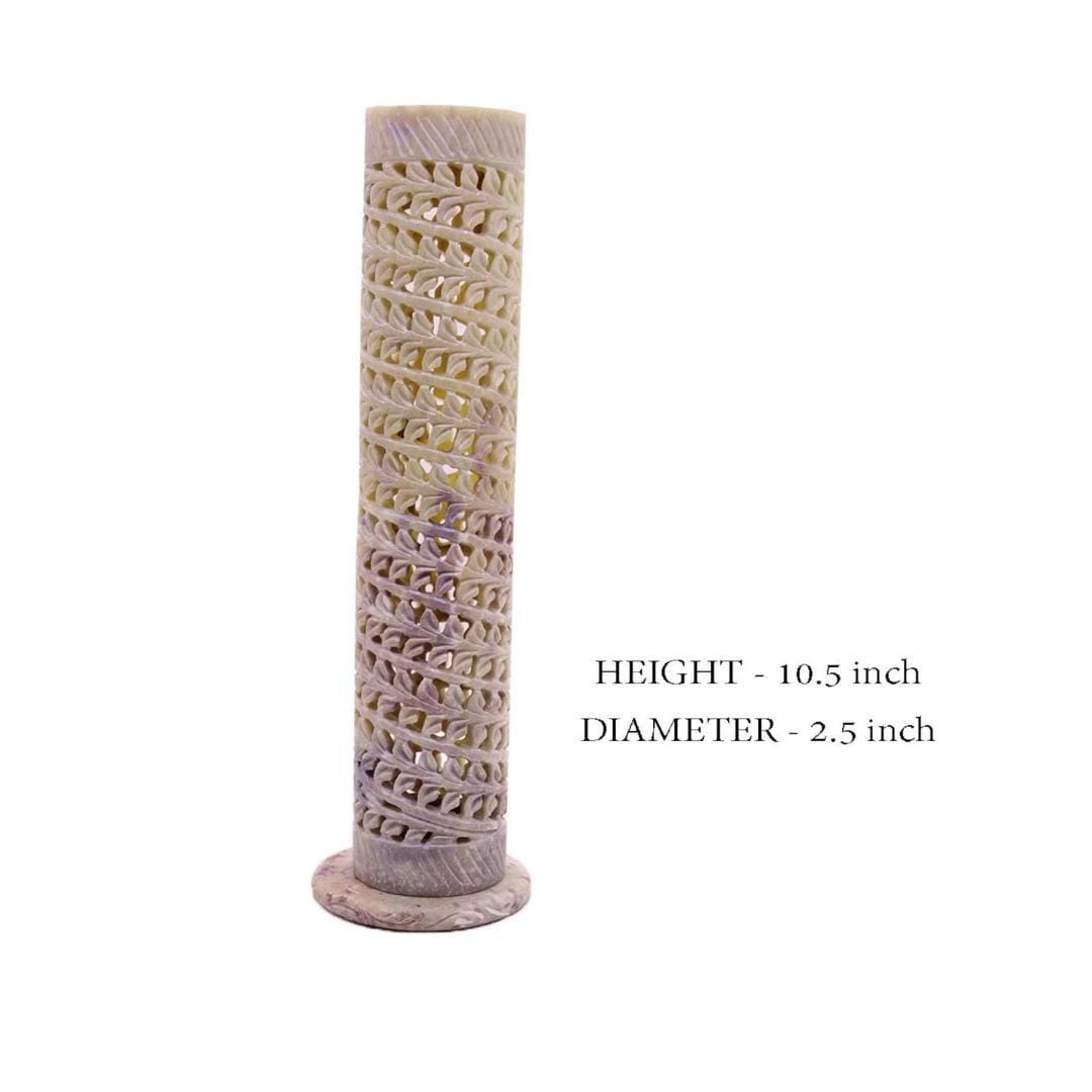 Hand Carved Soapstone Incense Burner, 10.5" Lattice Stone Candle Holder, Floral Jali Tower, Meditation & Spiritual Gift