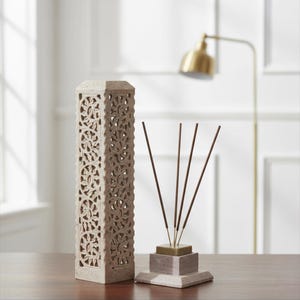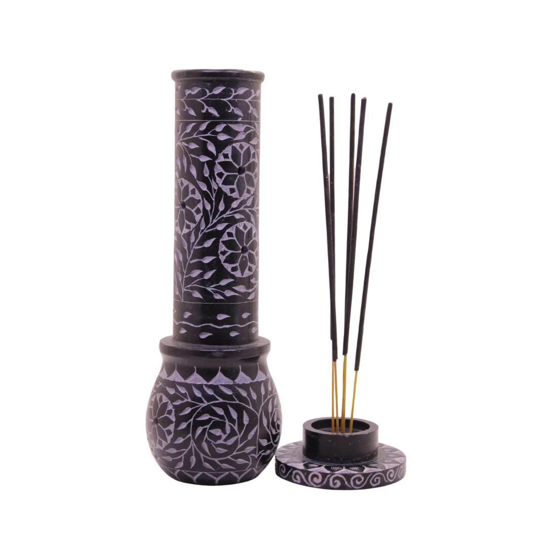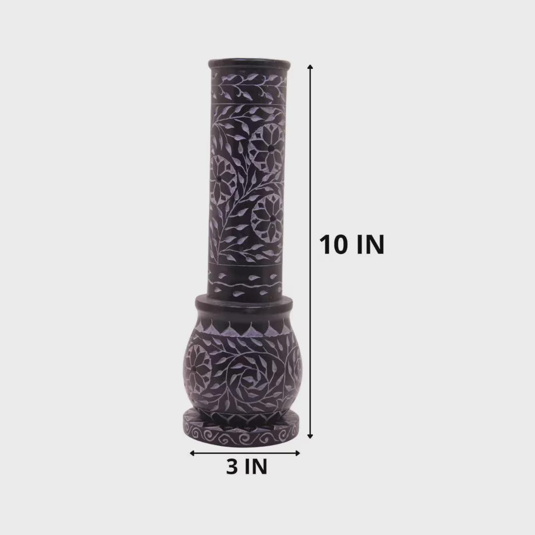 Hand Carved Soapstone Incense Burner, 10" Floral Stone Candle Holder Tower, Multi Purpose Spiritual Decor, Meditation Gift