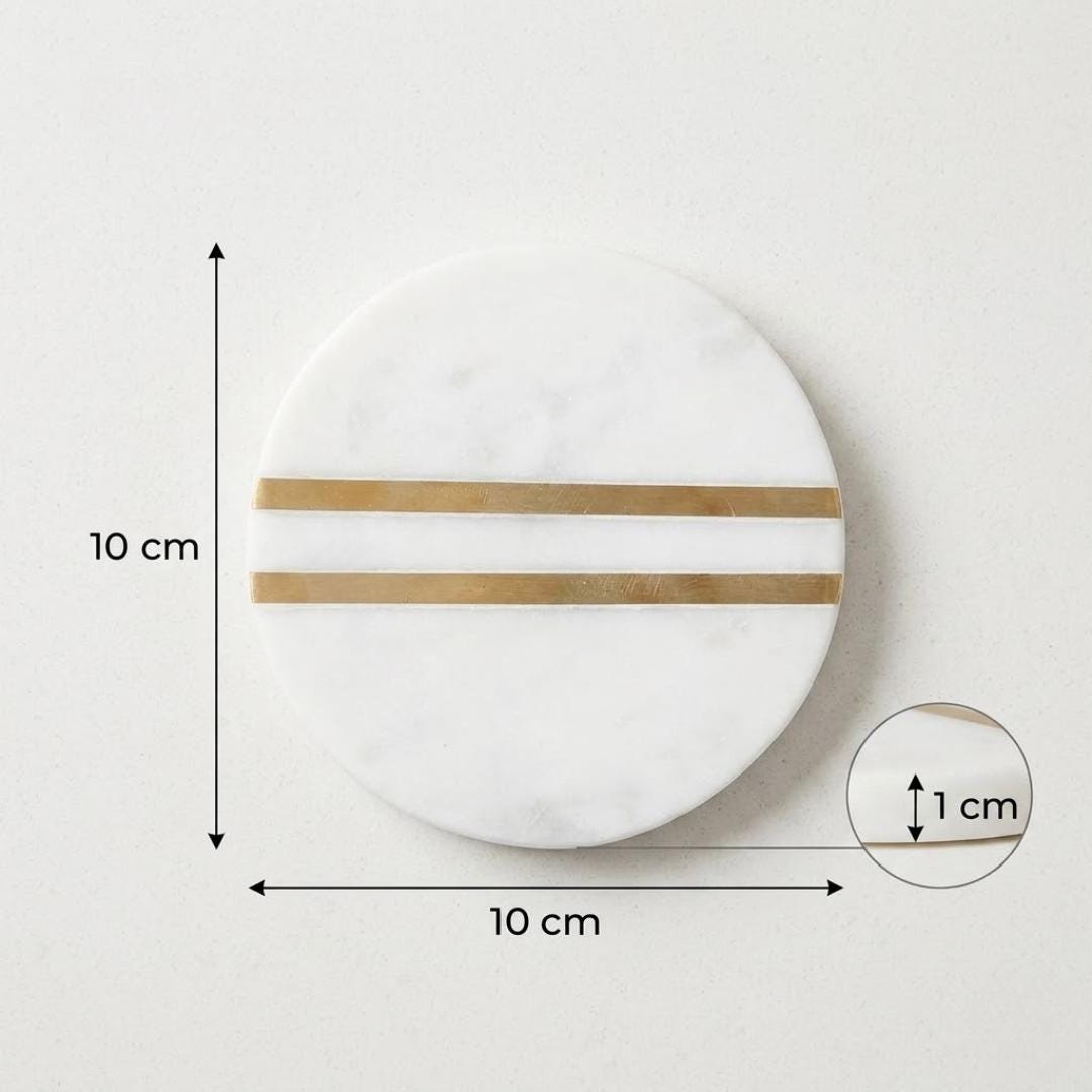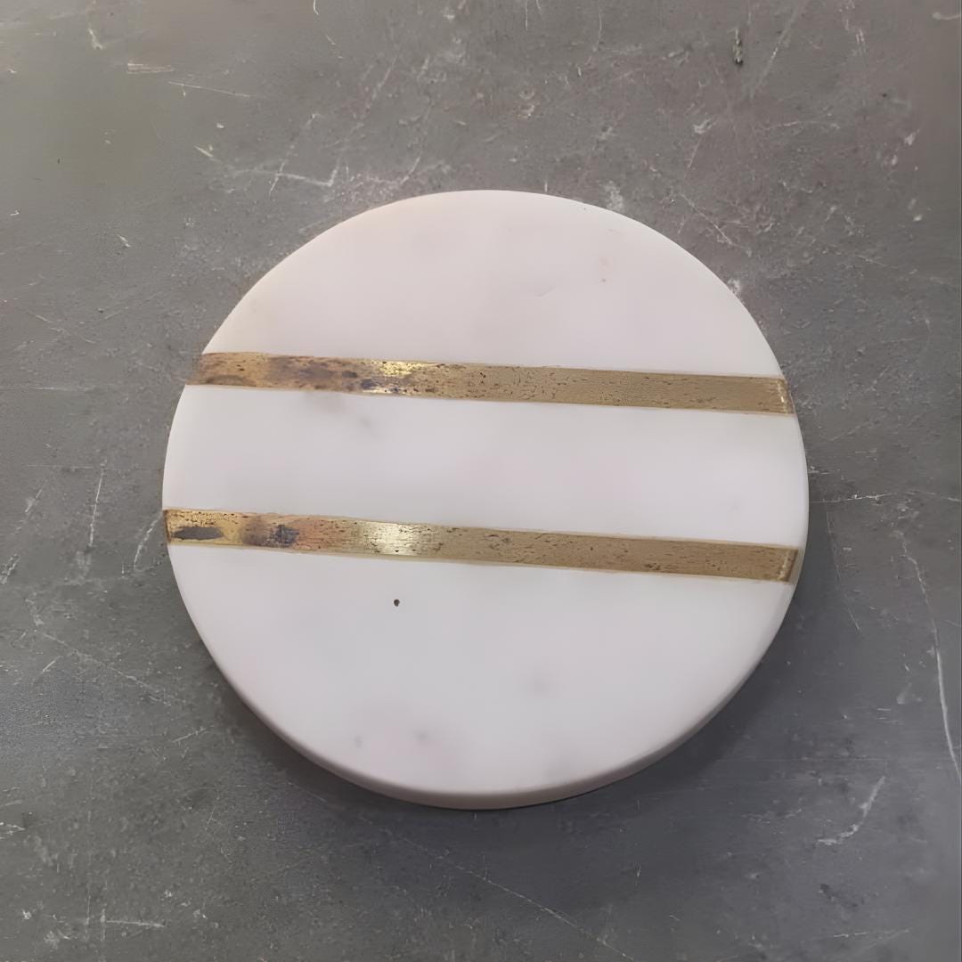 Premium Quality & Design Each coaster is meticulously handcrafted from high-quality white marble, known for its unique natural veining and durability. The striking parallel gold brass inlays are polished to a shine, creating a modern, minimalist look that complements any interior—from mid-century modern to contemporary chic.