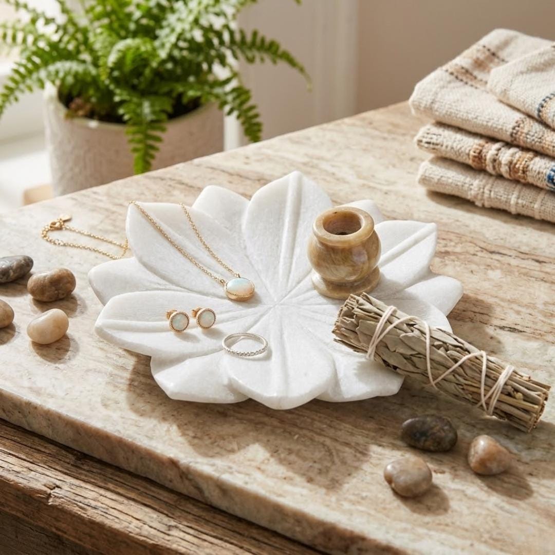Why Choose Our Marble Lotus Bowl? Artisan Craftsmanship: Every petal is intricately carved from solid stone, ensuring a unique and high-end feel that mass-produced items can't match.