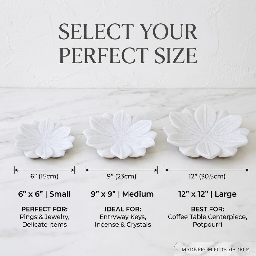 Handcrafted White Marble Lotus Bowl - Decorative Flower Carved Tray for Home Decor, Centerpiece for Coffee Table & Pooja Room, Available in 6, 9, 12 Inches