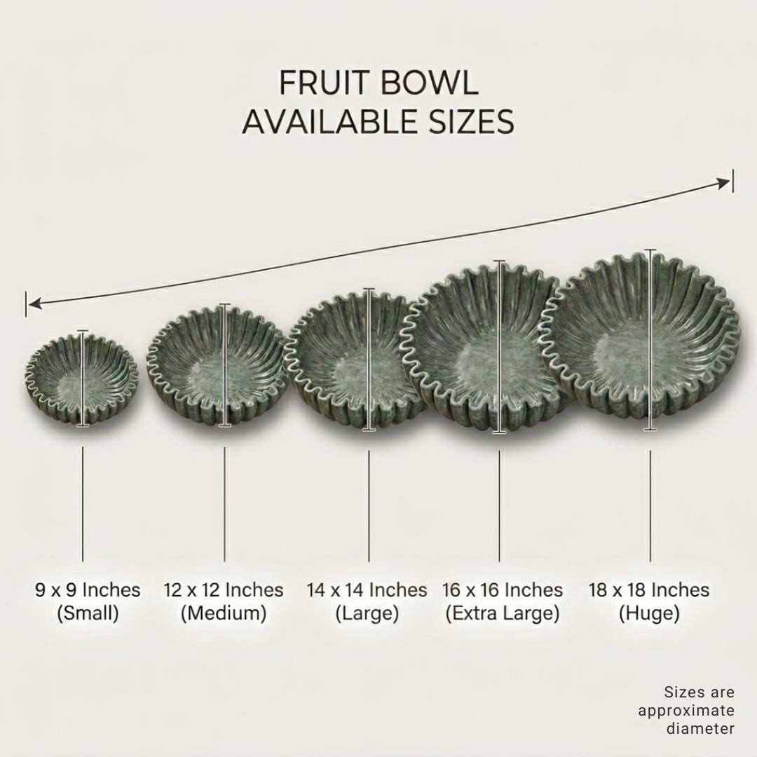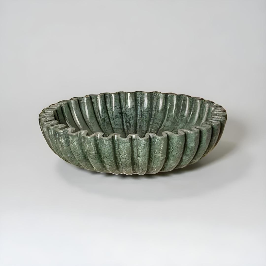 Handcrafted Green Marble Ruffled Fruit Bowl - Scalloped Ribbed Decorative Centerpiece, Fluted Stone Catchall, 5 Sizes