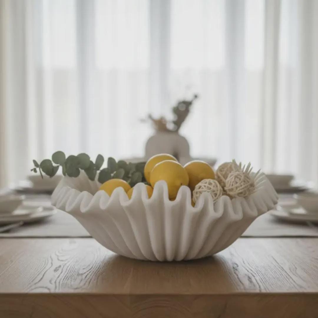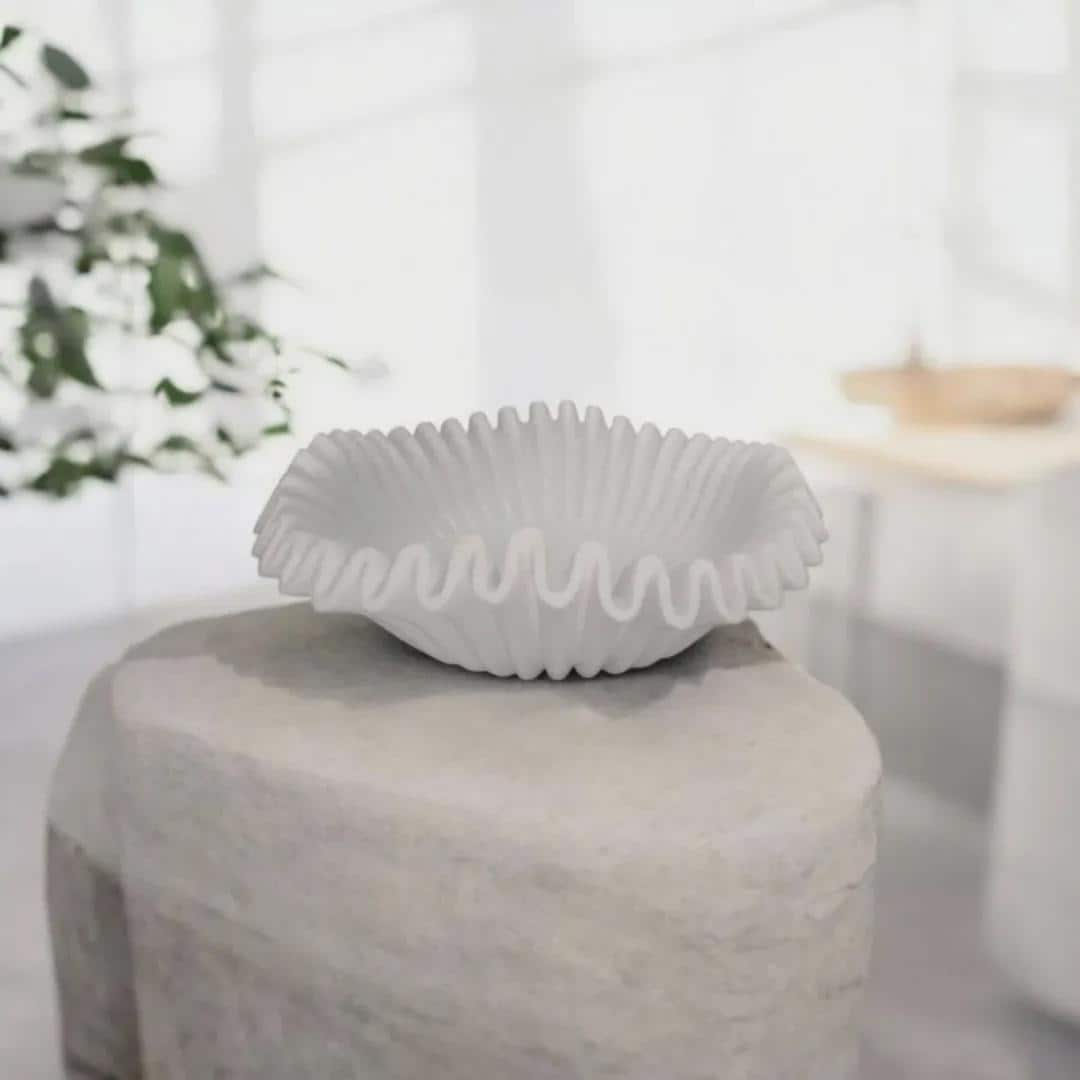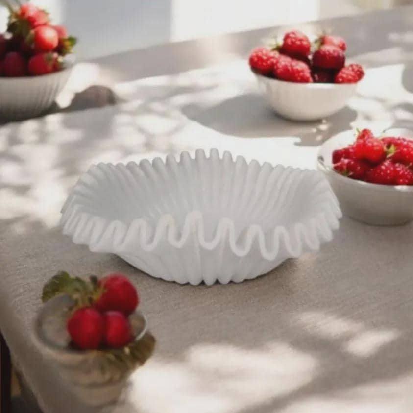 Bring the Elegance of Sculpted Stone to Your Home with Our White Marble Ruffled Bowl